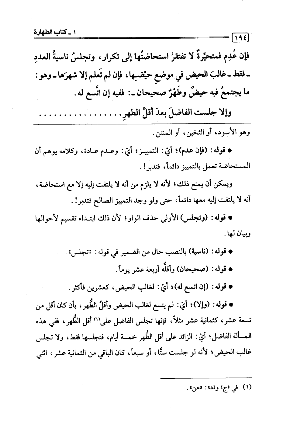 وإلا جلست الفاضلَ بعدَ أقلِّ الطهر. . . . . .