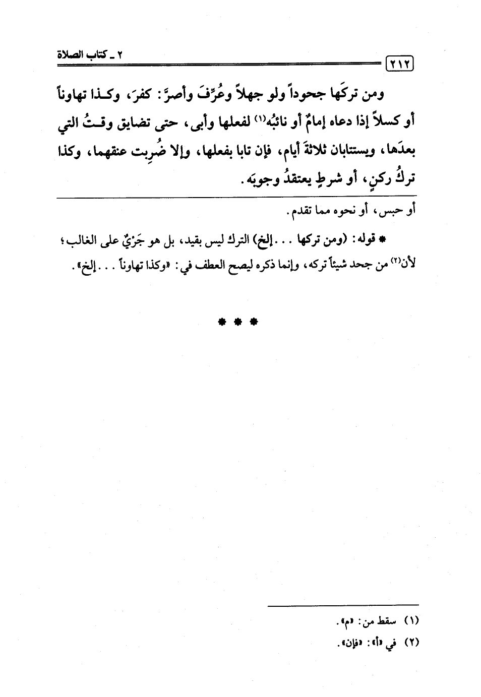 * قوله: (ومن تركها. . . إلخ) الترك ليس بقيد، بل هو جَرْيٌ على الغالب؛ لأن (¬2) من جحد شيئًا تركه، وإنما ذكره ليصح العطف في: "وكذا تهاونًا. . . إلخ".