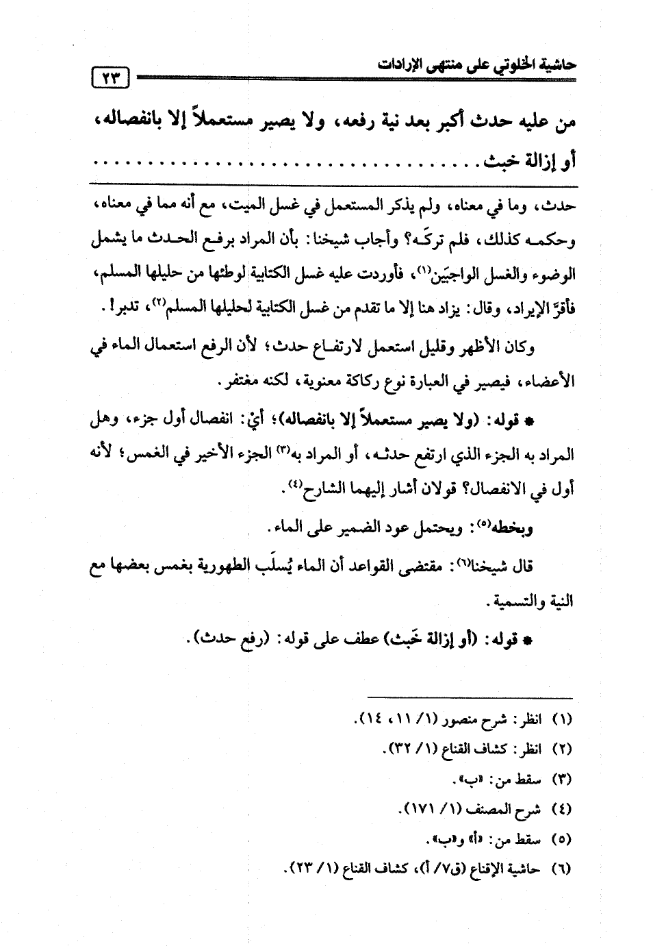 (¬6) حاشية الإقناع (ق 7/ أ)، كشاف القناع (1/ 23).