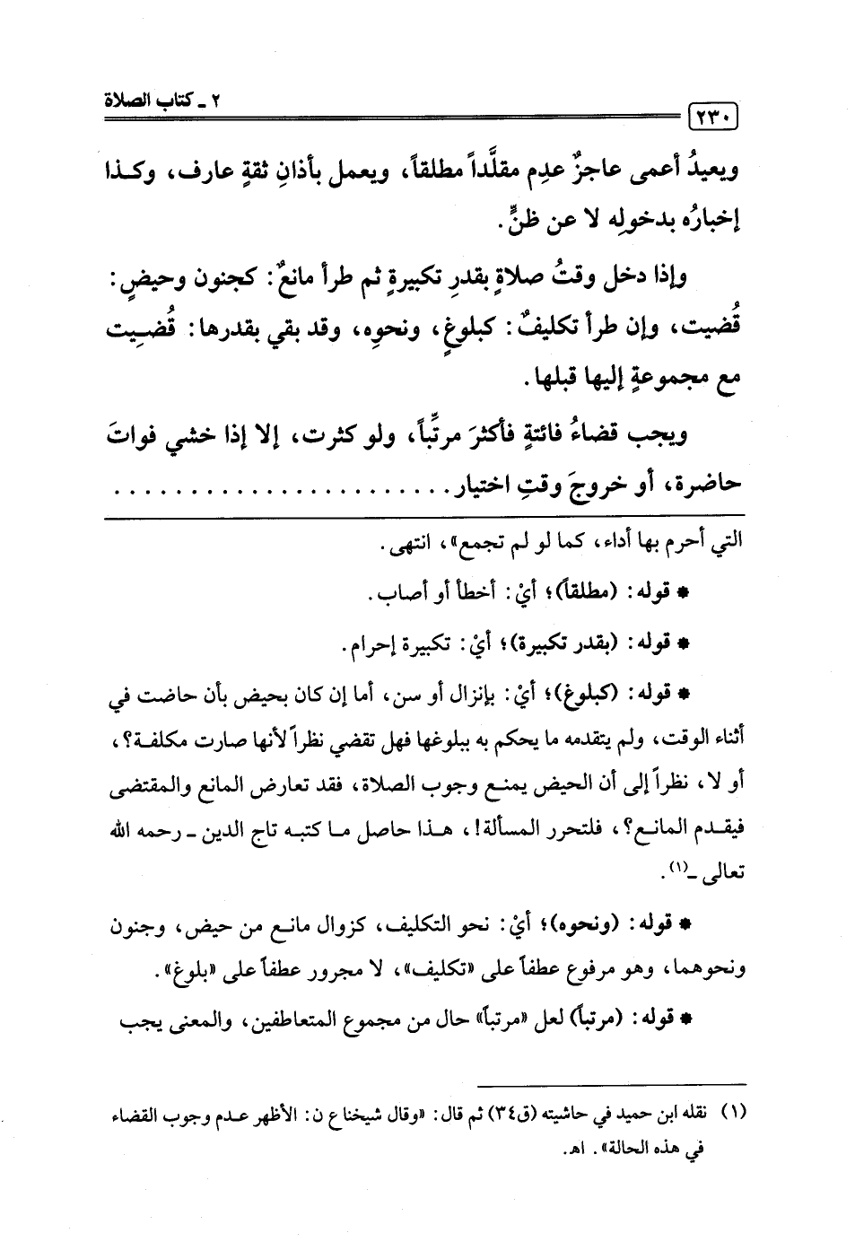 (¬1) نقله ابن حميد في حاشيته (ق 34) ثم قال: "وقال شيخنا ع ن: الأظهر عدم وجوب القضاء في هذه الحالة". اهـ.
