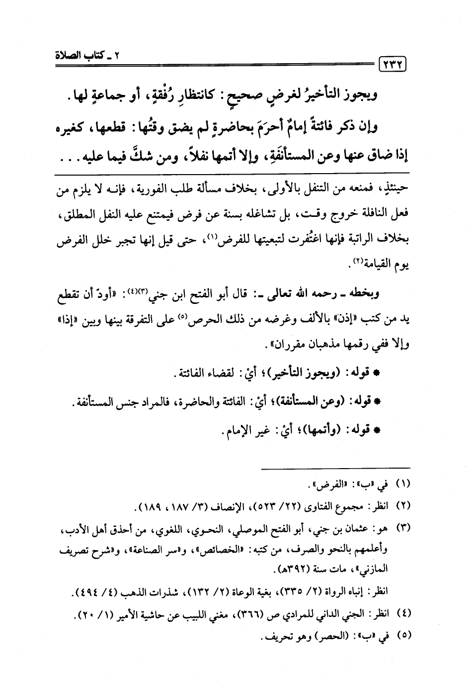 (¬3) هو: عثمان بن جني، أبو الفتح الموصلي، النحوي، اللغوي، من أحذق أهل الأدب، وأعلمهم بالنحو والصرف، من كتبه: "الخصائص"، و"سر الصناعة"، و"شرح تصريف المازني"، مات سنة (392 هـ).