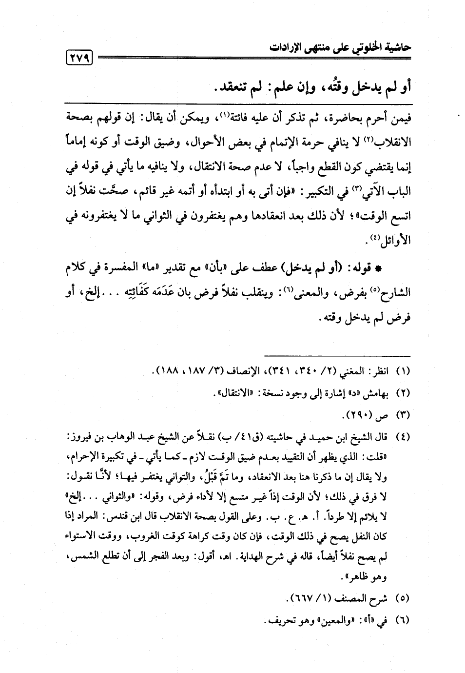 (¬4) قال الشيخ ابن حميد في حاشيته (ق 41/ ب) نقلًا عن الشيخ عبد الوهاب بن فيروز: "قلت: الذي يظهر أن التقييد بعدم ضيق الوقت لازم -كما يأتي- في تكبيرة الإحرام، ولا يقال إن ما ذكرنا هنا بعد الانعقاد، وما تَمَّ قَبْلُ، والتواني يغتفر فيها؛ لأنَّا نقول: لا فرق في ذلك؛ لأن الوقت إذًا غير متسع إلا لأداء فرض، وقوله: "والثواني. . . إلخ" لا يلائم إلا طردًا. أ. هـ. ع. ب. وعلى القول بصحة الانقلاب قال ابن قندس: المراد إذا كان النفل يصح في ذلك الوقت، فإن كان وقت كراهة كوقت الغروب، ووقت الاستواء لم يصح نفلًا أيضًا، قاله في شرح الهداية. اهـ، أقول: وبعد الفجر إلى أن تطلع الشمس، وهو ظاهر".