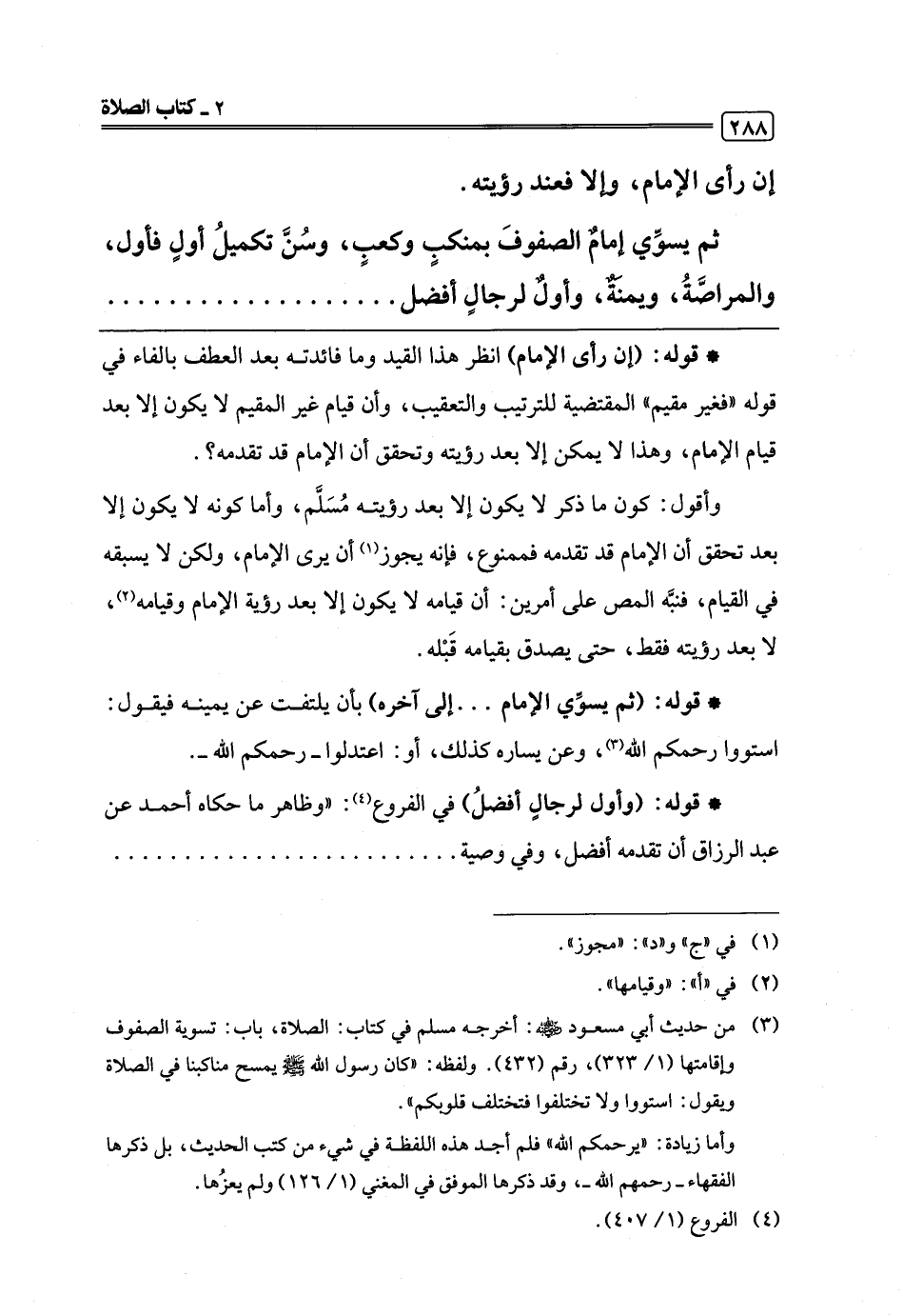 * قوله: (ثم يسوِّي الإمام. . . إلى آخره) بأن يلتفت عن يمينه فيقول: استووا رحمكم اللَّه (¬3)، وعن يساره كذلك، أو: اعتدلوا -رحمكم اللَّه-.