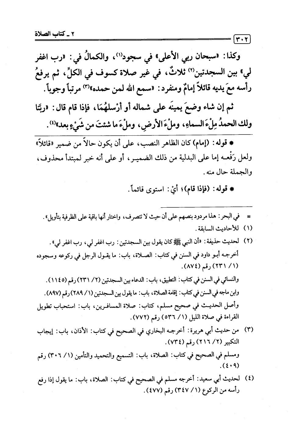 (¬4) لحديث أبي سعيد: أخرجه مسلم في الصحيح في كتاب: الصلاة، باب: ما يقول إذا رفع رأسه من الركوع (1/ 347) رقم (477).