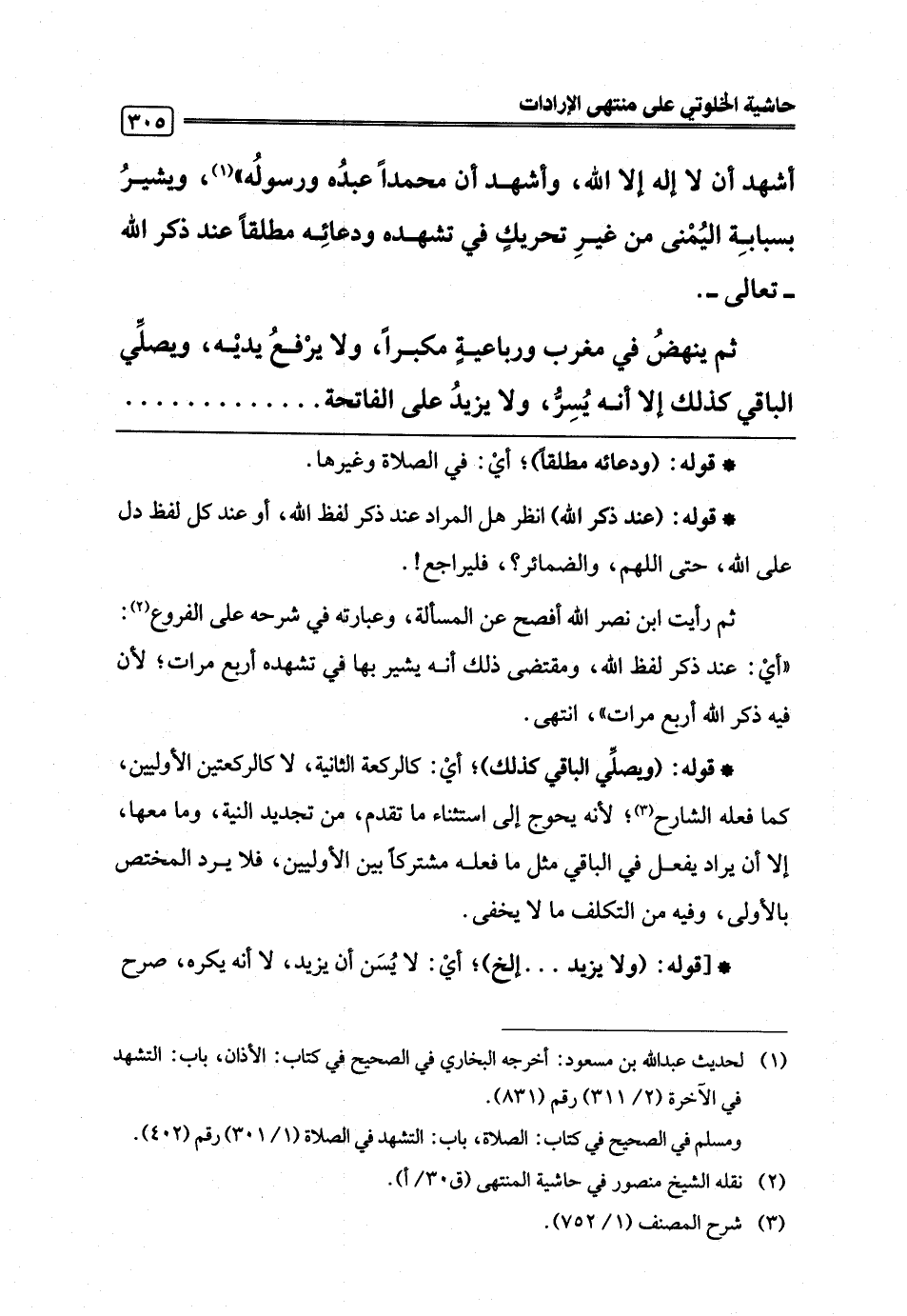 (¬1) لحديث عبد اللَّه بن مسعود: أخرجه البخاري في الصحيح في كتاب: الأذان، باب: التشهد في الآخرة (2/ 311) رقم (831).