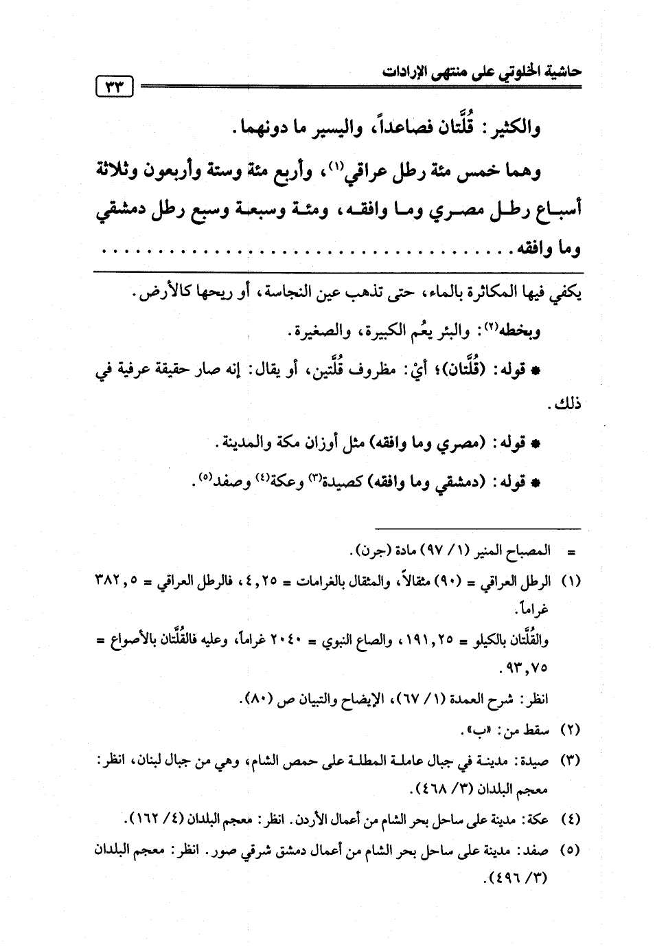 وهما خمس مئة رطل عراقي (¬1)، وأربع مئة وستة وأربعون وثلاثة أسباع رطل مصري وما وافقه، ومئة وسبعة وسبع رطل دمشقي وما وافقه. . . . . .