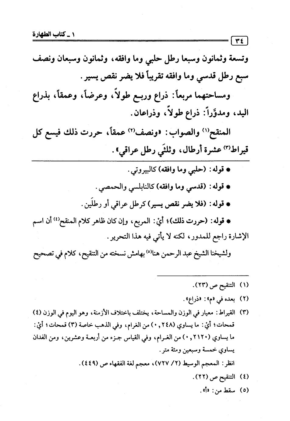 المنقح (¬1) والصواب: "ونصف (¬2) عمقًا، حررت ذلك فيسع كل قيراط (¬3) عشرة أرطال، وثلثَي رطل عراقي".
