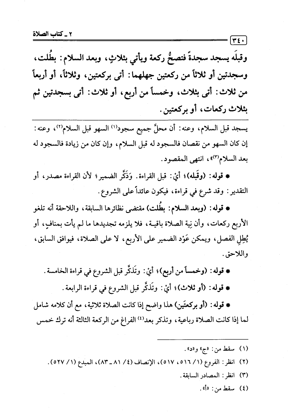 (¬2) انظر: الفروع (1/ 516، 517)، الإنصاف (4/ 81 - 83)، المبدع (1/ 527).