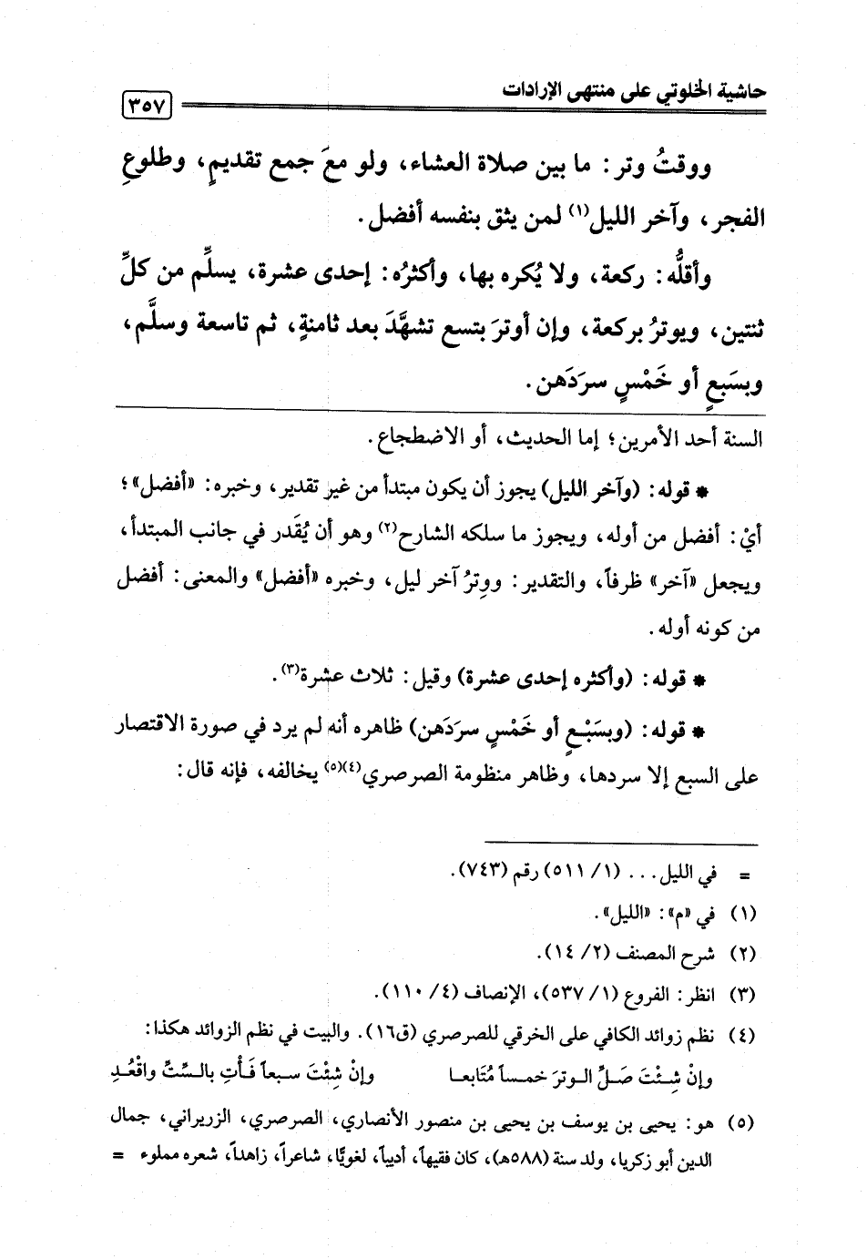 وإنْ شِئْتَ صَلِّ الوترَ خمسًا مُتَابعا ... وإنْ شِئْتَ سبعًا فَأْتِ بالسِّتِّ واقْعُدِ