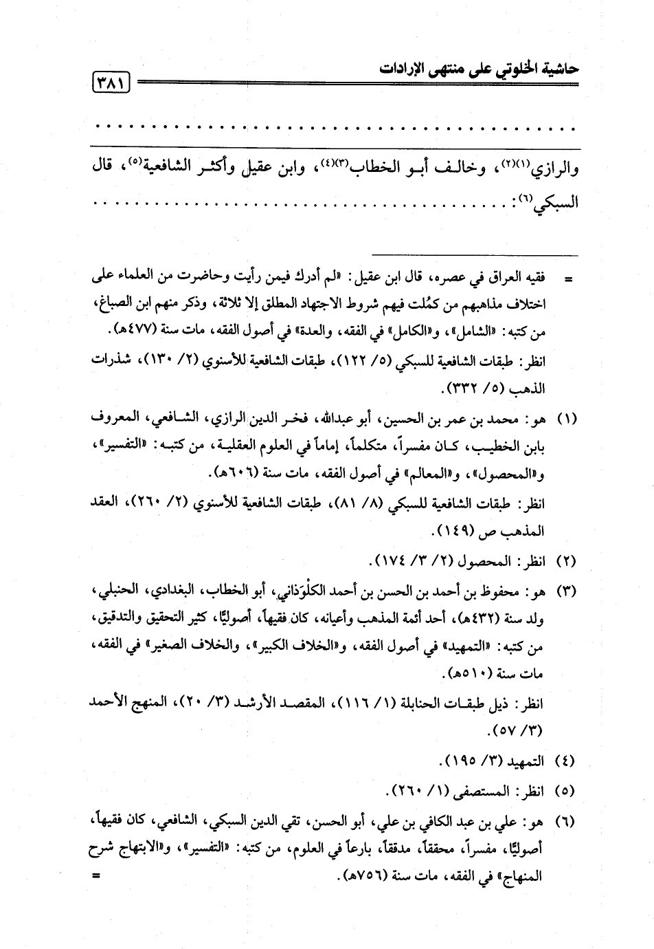 (¬6) هو: علي بن عبد الكافي بن علي، أبو الحسن، تقي الدين السبكي، الشافعي، كان فقيهًا، أصوليًّا، مفسرًا، محققًا، مدققًا، بارعًا في العلوم، من كتبه: "التفسير"، و"الابتهاج شرح المنهاج" في الفقه، مات سنة (756 هـ). =