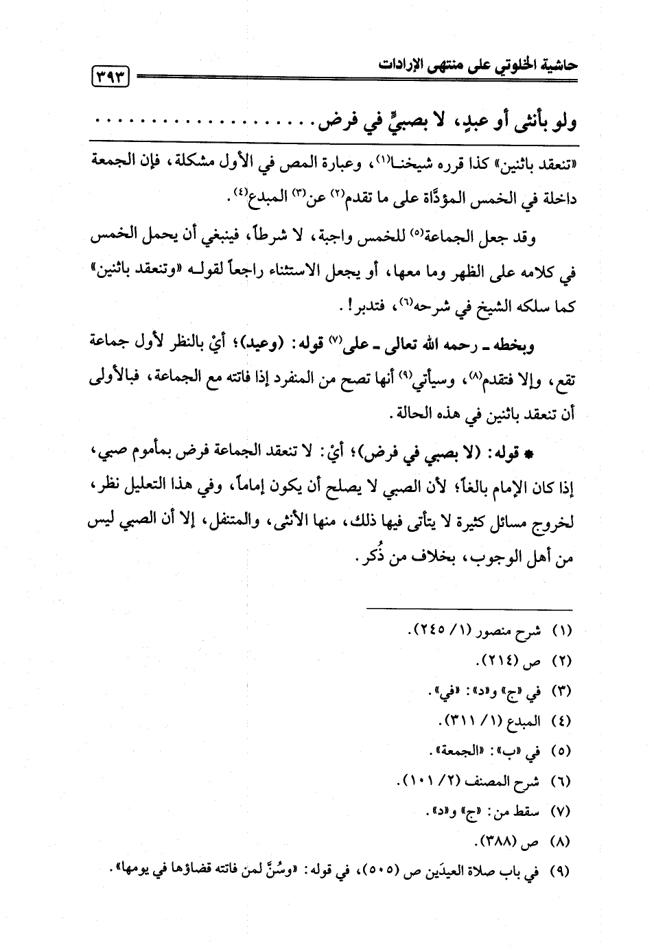 (¬9) في باب صلاة العيدَين ص (505)، في قوله: "وسُنَّ لمن فاتته قضاؤها في يومها".
