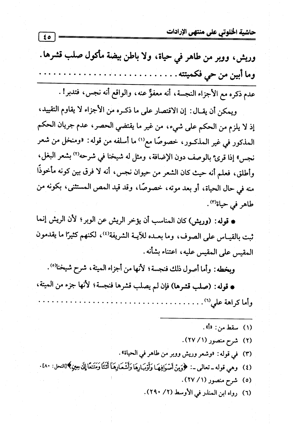 (¬3) في قوله: "وشعر وريش ووبر من طاهر في الحياة".