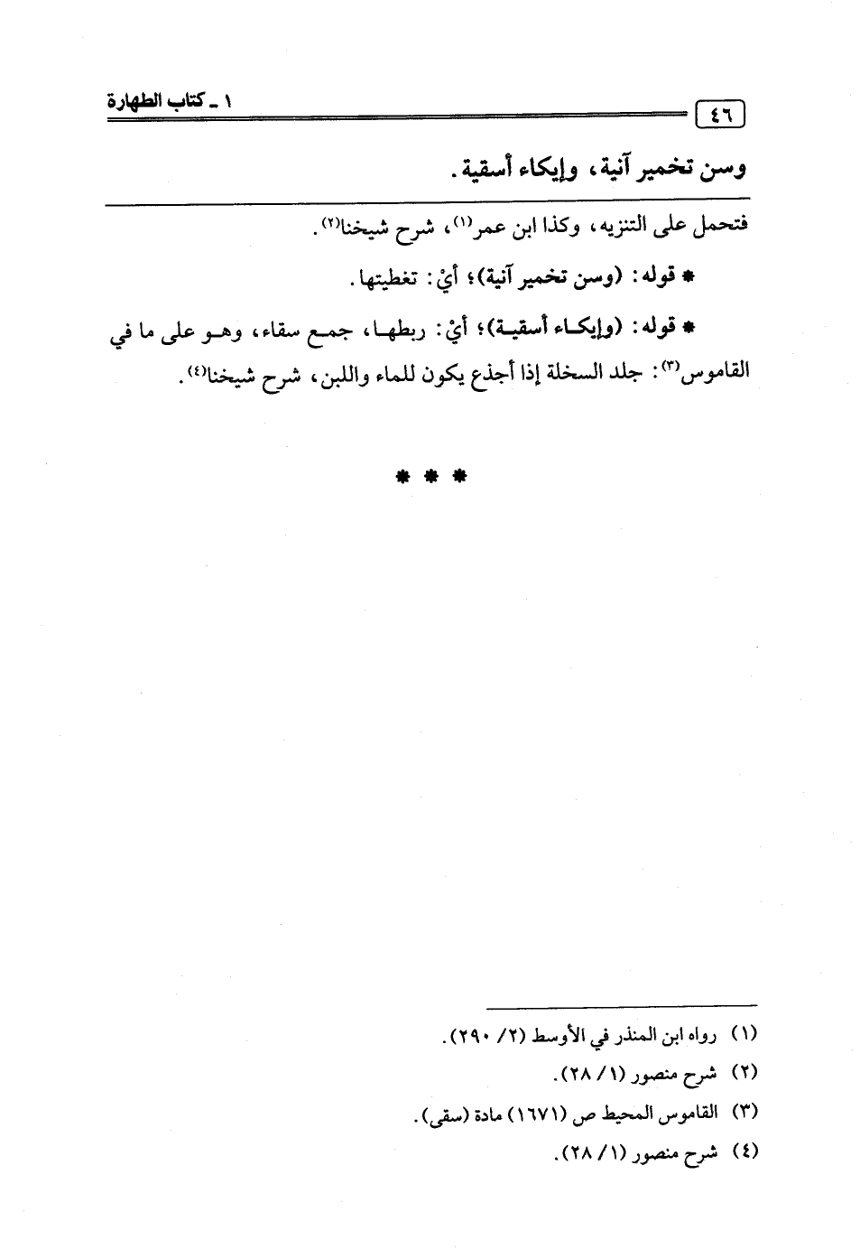 * قوله: (وإيكاء أسقية)؛ أيْ: ربطها، جمع سقاء، وهو على ما في القاموس (¬3): جلد السخلة إذا أجذع يكون للماء واللبن، شرح شيخنا (¬4).