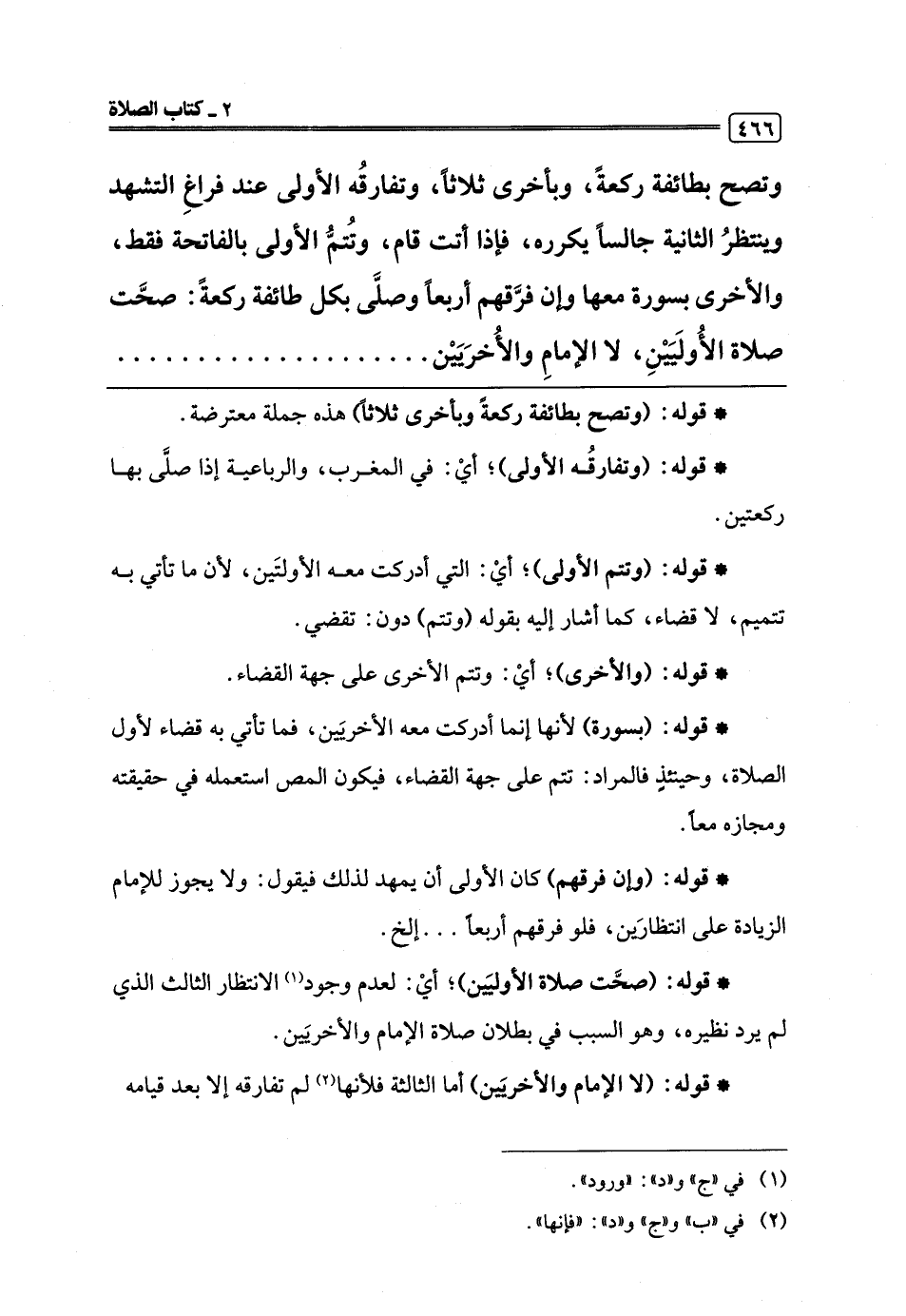 * قوله: (وتصح بطائفة ركعةً وبأخرى ثلاثًا) هذه جملة معترضة.