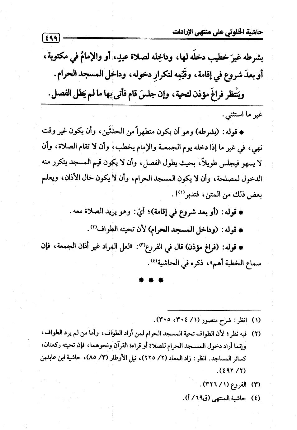 (¬4) حاشية المنتهى (ق 69/ أ).
