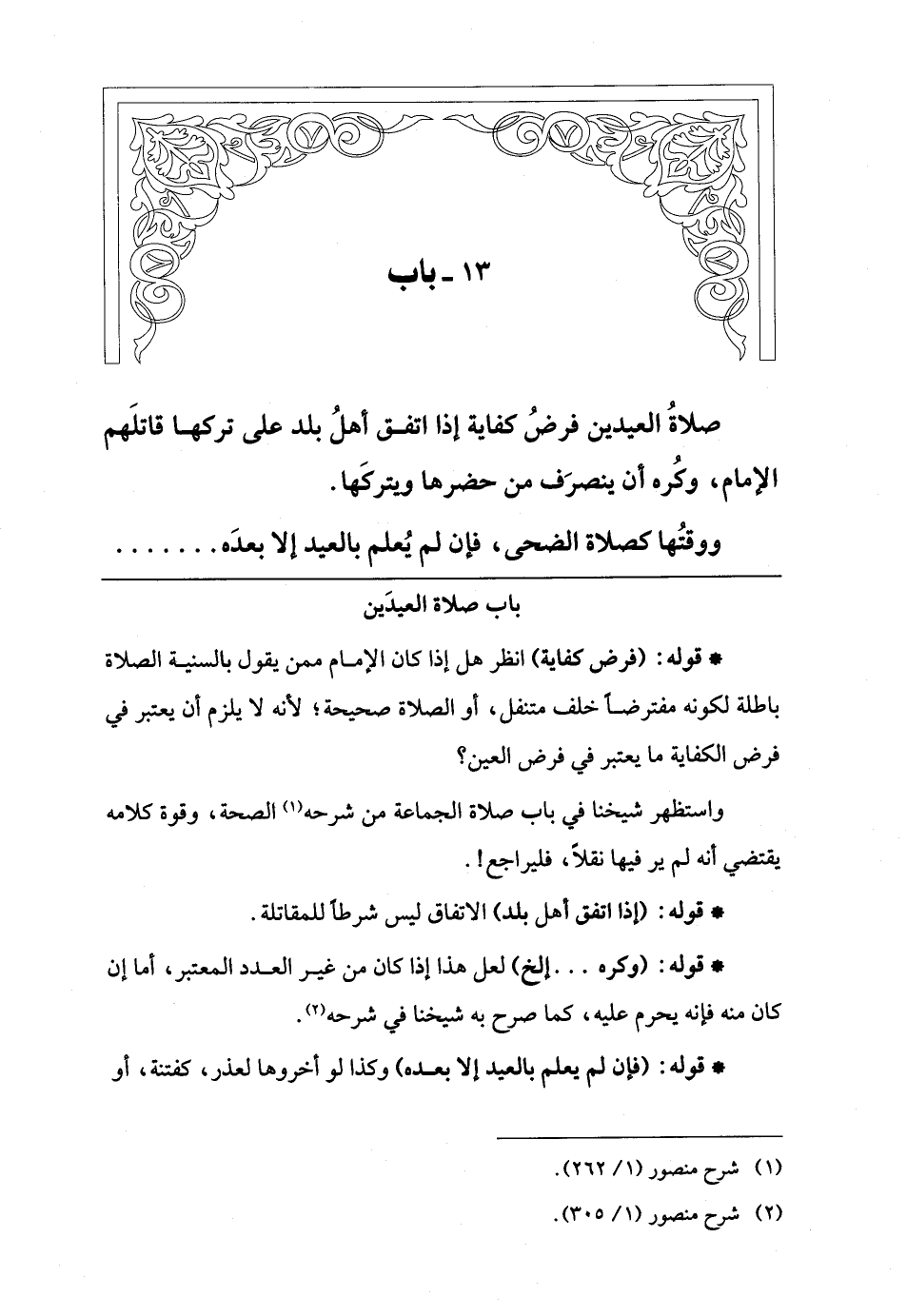 صلاةُ العيدين فرضُ كفاية إذا اتفق أهلُ بلد على تركها قاتلَهم الإمام، وكُره أن ينصرَف من حضرها ويتركَها.