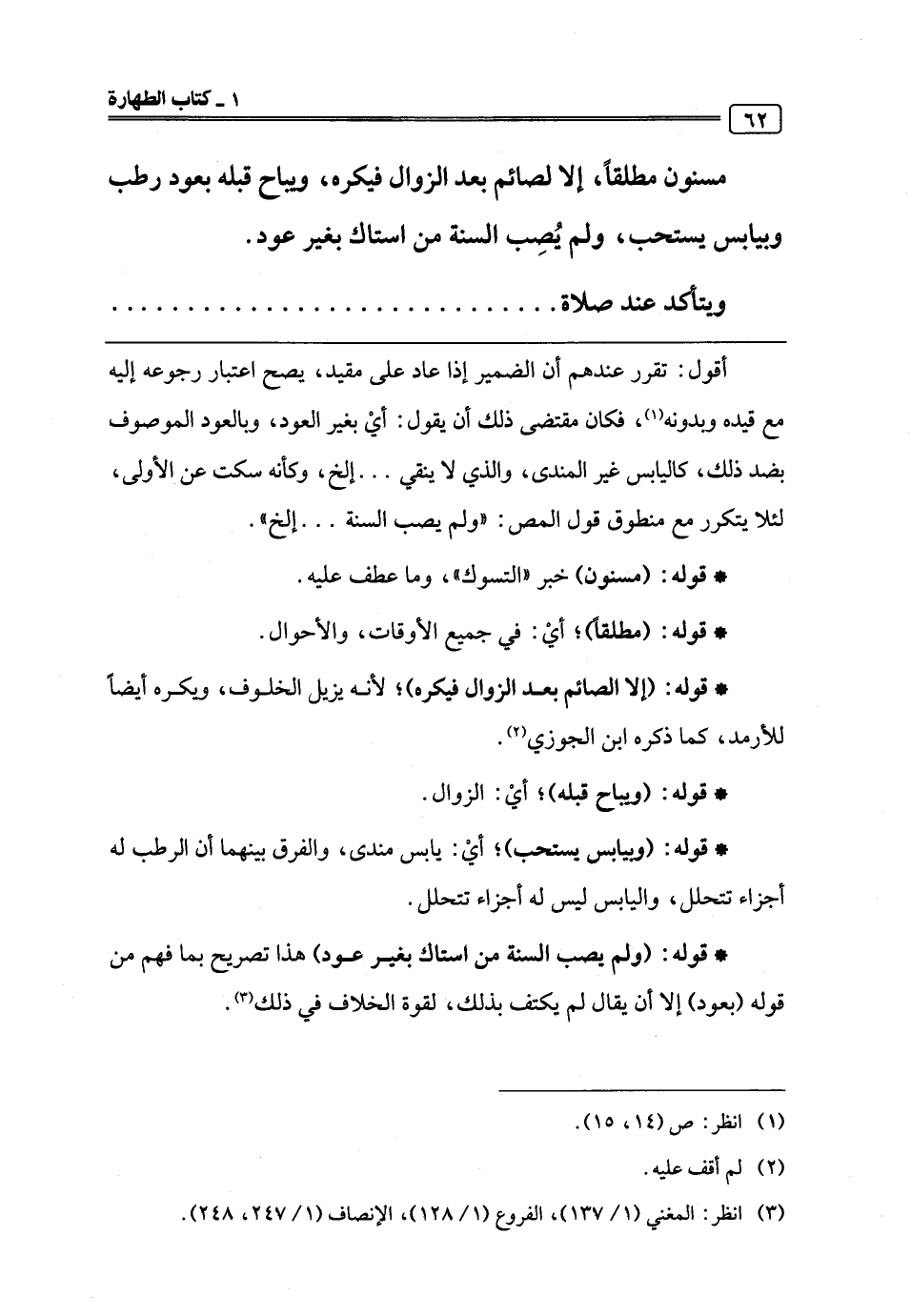 (¬3) انظر: المغني (1/ 137)، الفروع (1/ 128)، الإنصاف (1/ 247، 248).