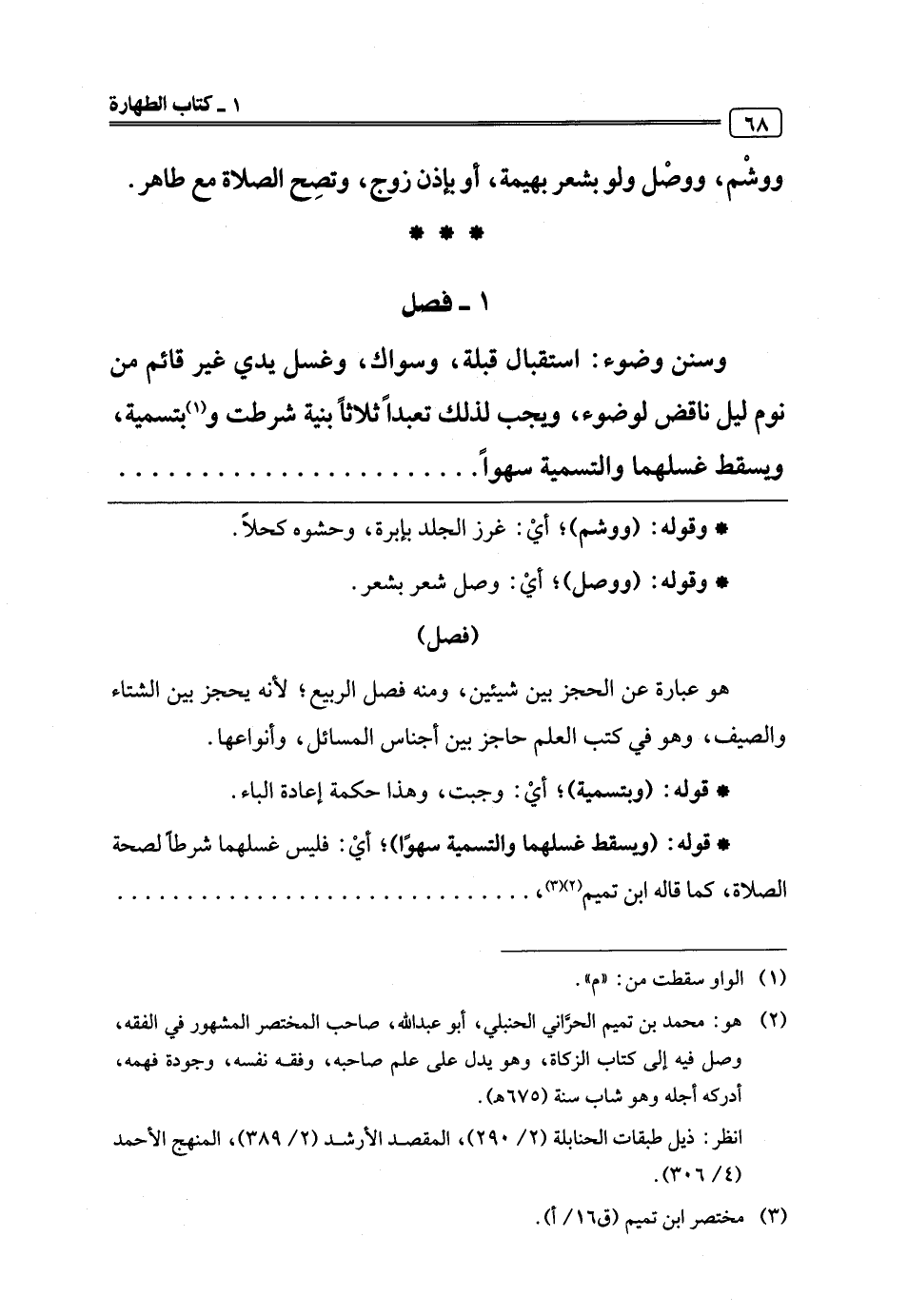 (¬2) هو: محمد بن تميم الحرَّاني الحنبلي، أبو عبد اللَّه، صاحب المختصر المشهور في الفقه، وصل فيه إلى كتاب الزكاة، وهو يدل على علم صاحبه، وفقه نفسه، وجودة فهمه، أدركه أجله وهو شاب سنة (675 هـ).