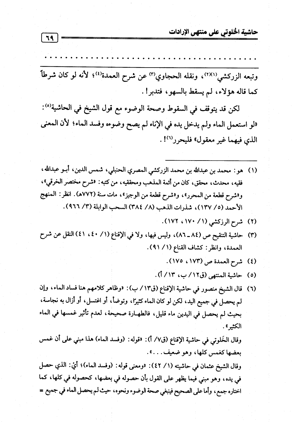 (¬5) حاشية المنتهى (ق 12/ ب، 13/ أ).
