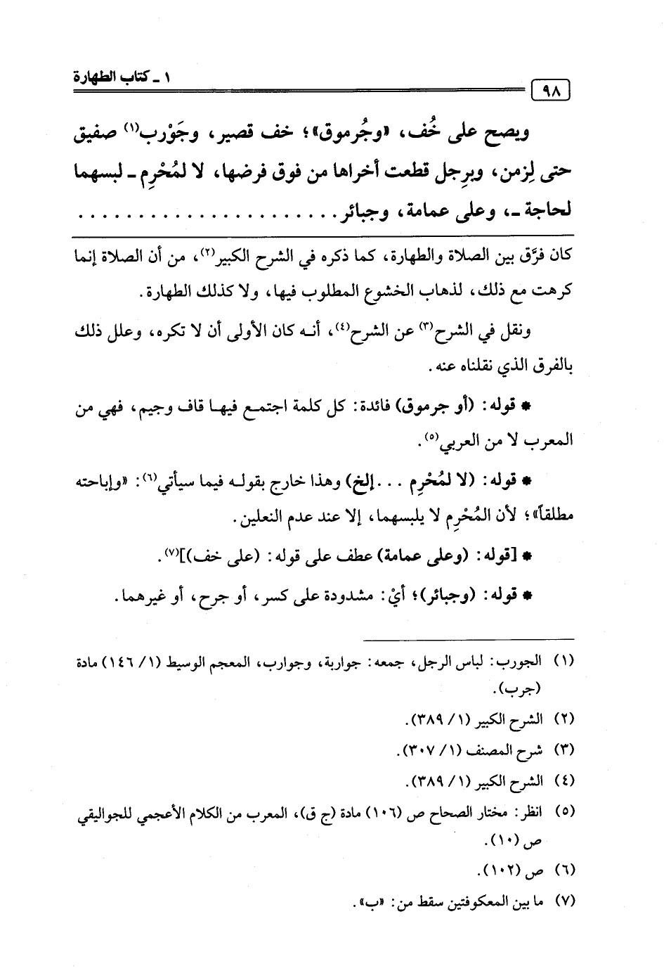 (¬1) الجورب: لباس الرجل، جمعه: جواربة، وجوارب، المعجم الوسيط (1/ 146) مادة (جرب).