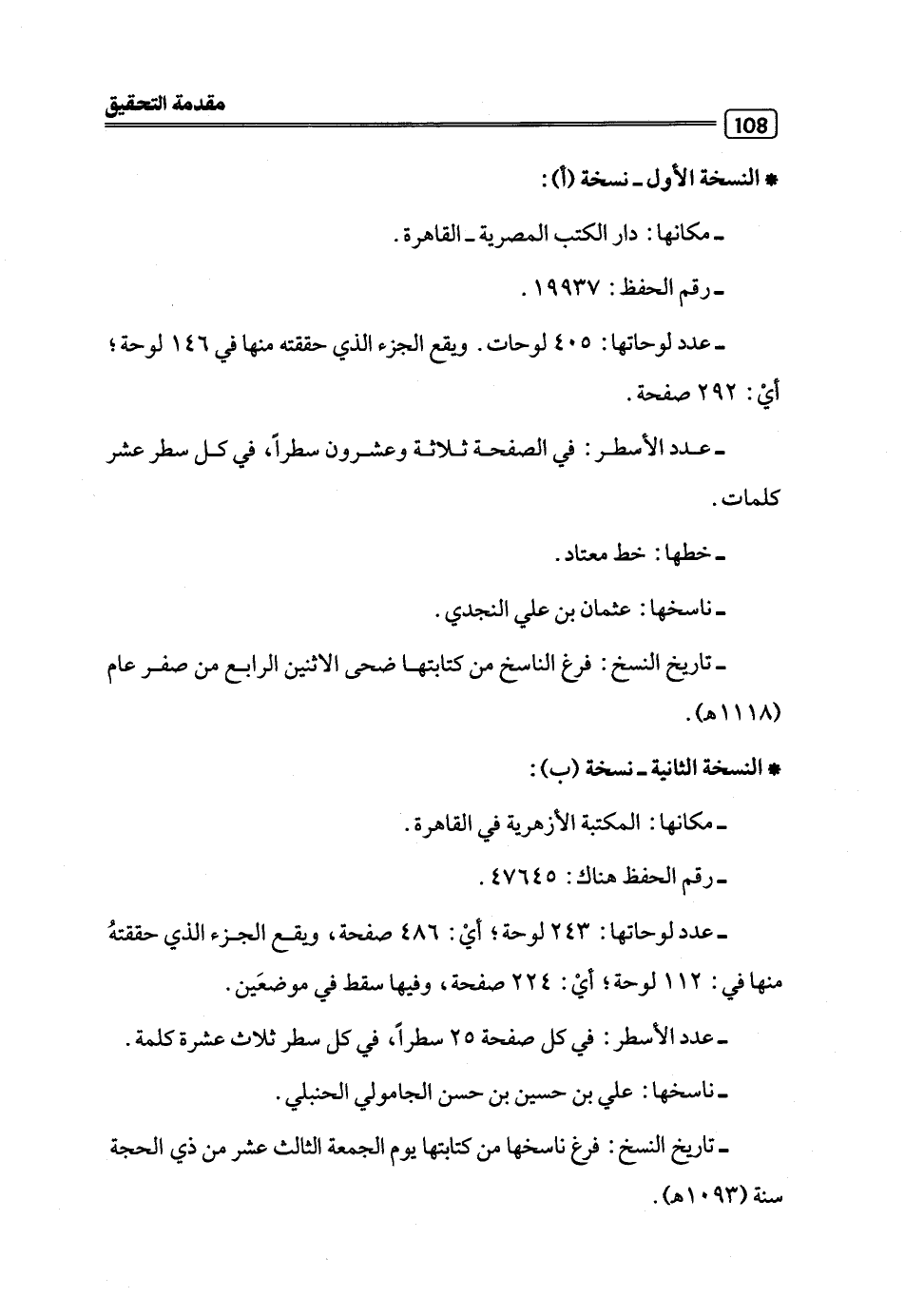 - تاريخ النسخ: فرغ ناسخها من كتابتها يوم الجمعة الثالث عشر من ذي الحجة سنة (1093 هـ).