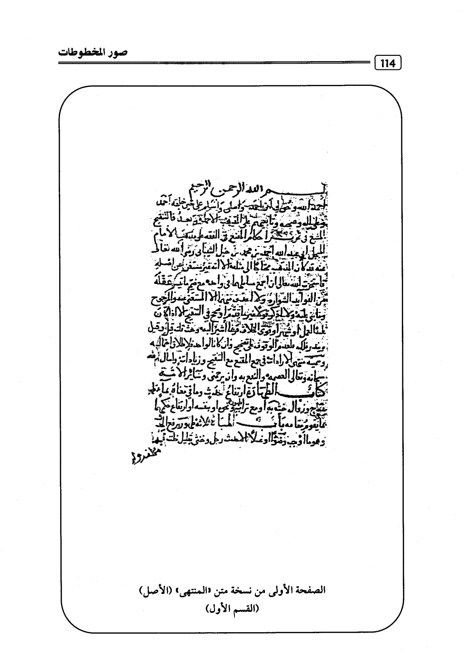 الصفحة الأولى من نسخة متن "المنتهى" (الأصل)