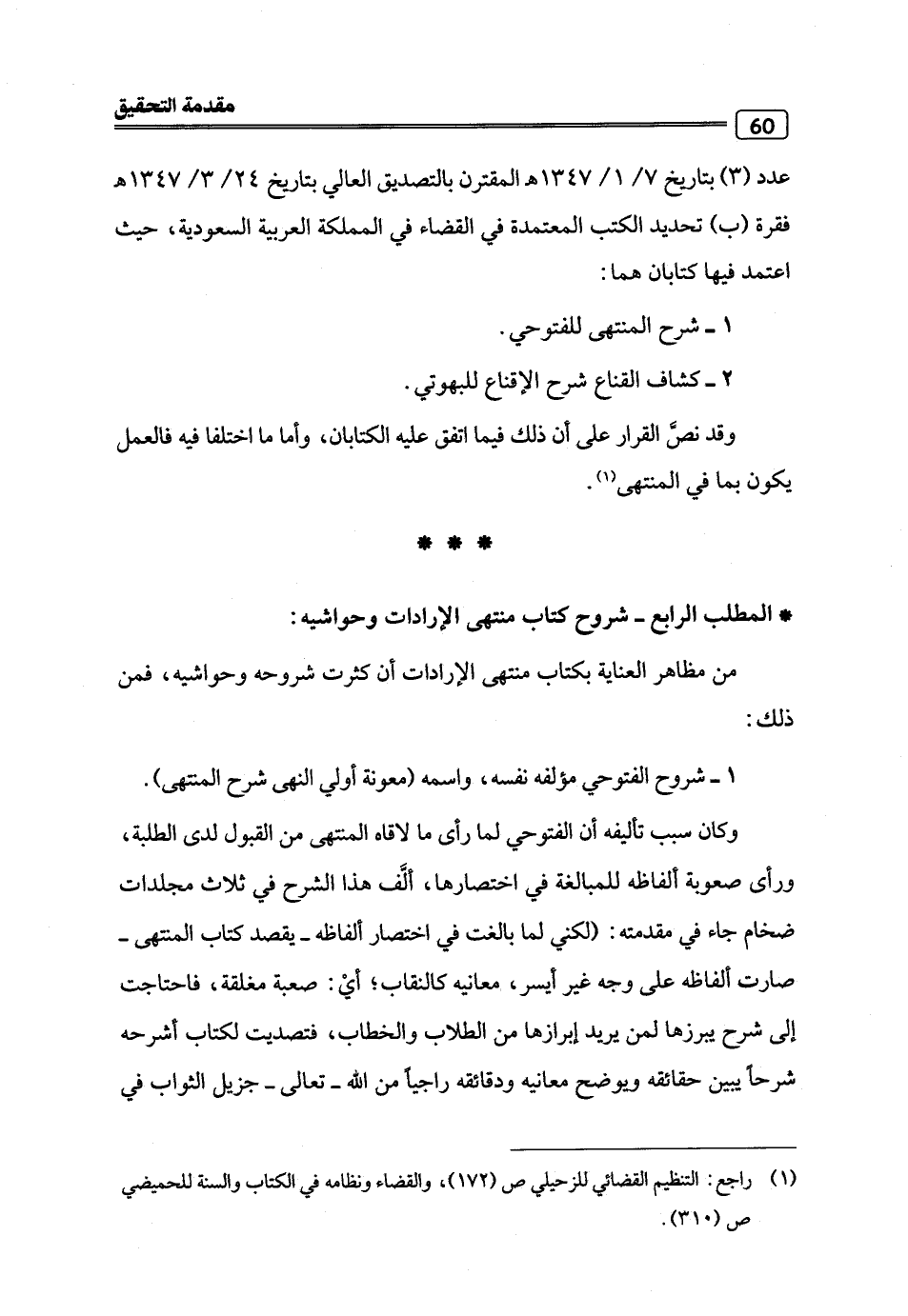 عدد (3) بتاريخ 7/ 1/ 1347 هـ المقترن بالتصديق العالي بتاريخ 24/ 3/ 1347 هـ فقرة (ب) تحديد الكتب المعتمدة في القضاء في المملكة العربية السعودية، حيث اعتمد فيها كتابان هما: