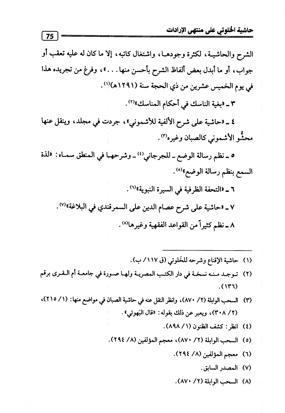 (¬1) حاشية الإقناع وشرحه للخَلوتي (ق 117/ ب).