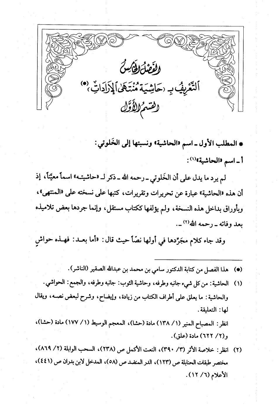 الفصل الخامس التعريف بـ (حاشية منتهى الإرادات) (*)