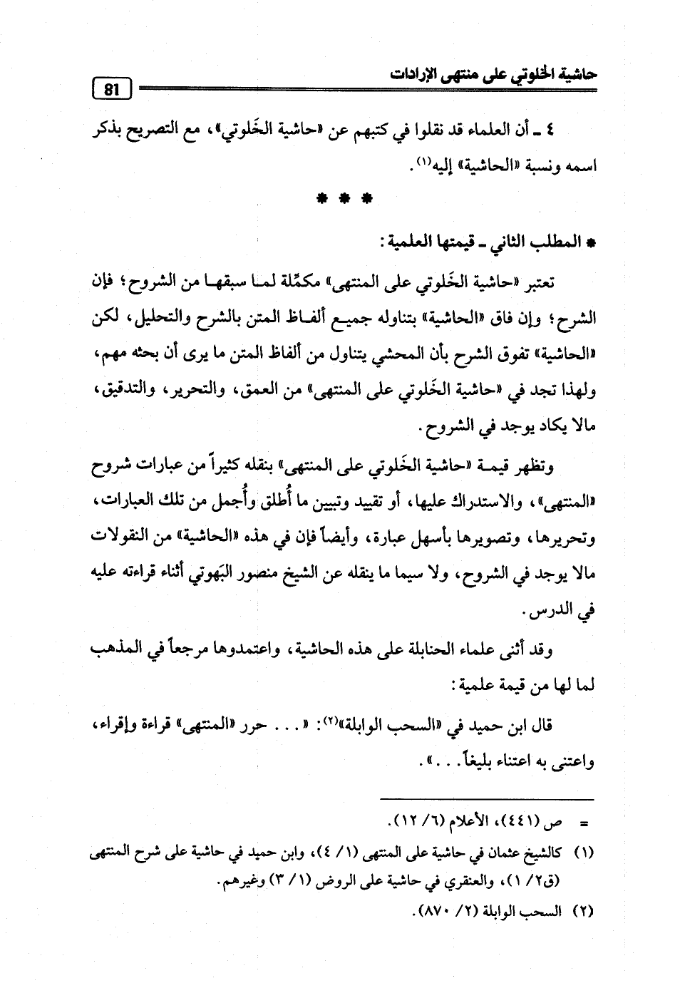(¬1) كالشيخ عثمان في حاشية على المنتهى (1/ 4)، وابن حميد في حاشية على شرح المنتهى (ق 2/ 1)، والعنقري في حاشية على الروض (1/ 3) وغيرهم.