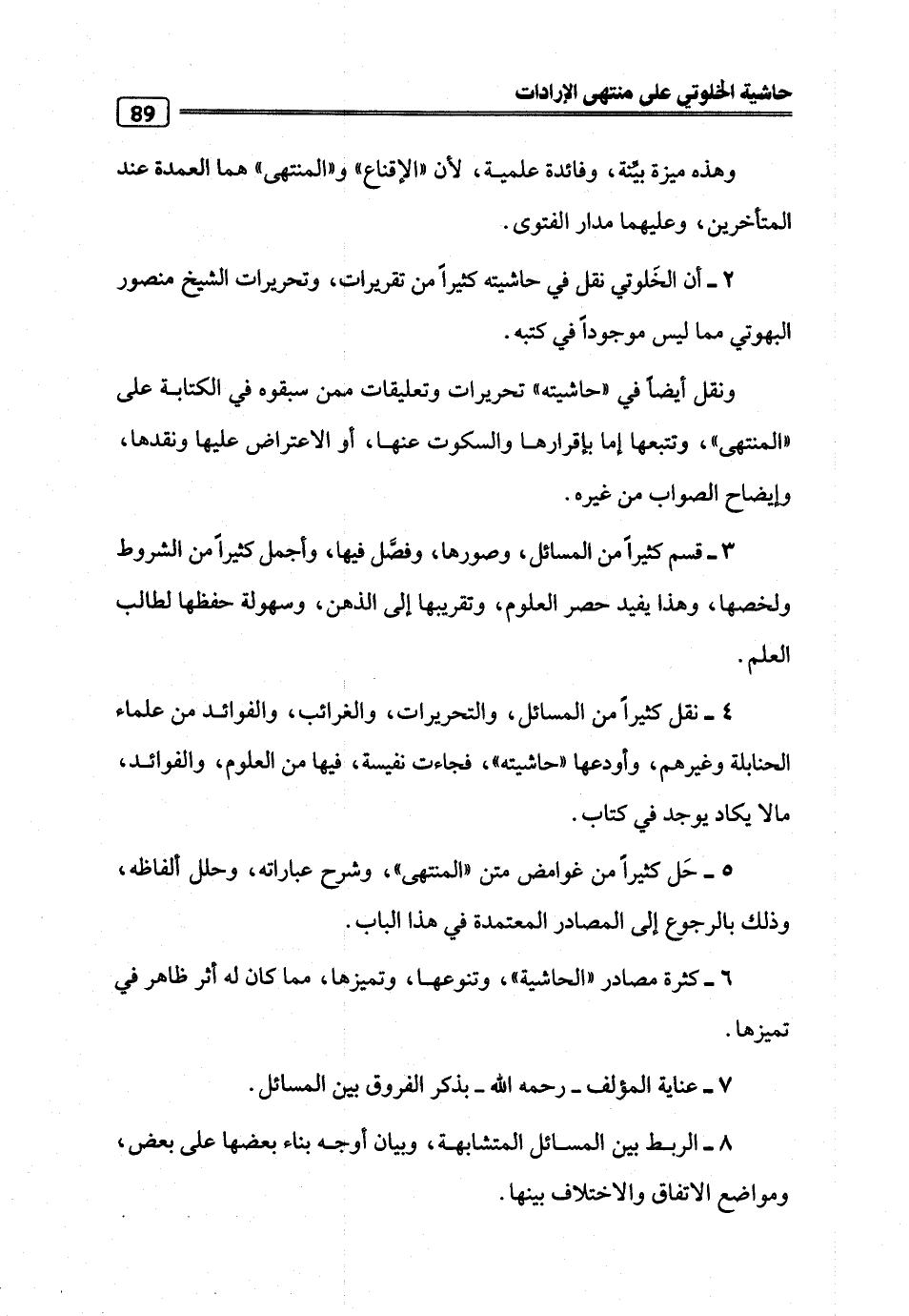 5 - حَل كثيرًا من غوامض متن "المنتهى"، وشرح عباراته، وحلل ألفاظه، وذلك بالرجوع إلى المصادر المعتمدة في هذا الباب.