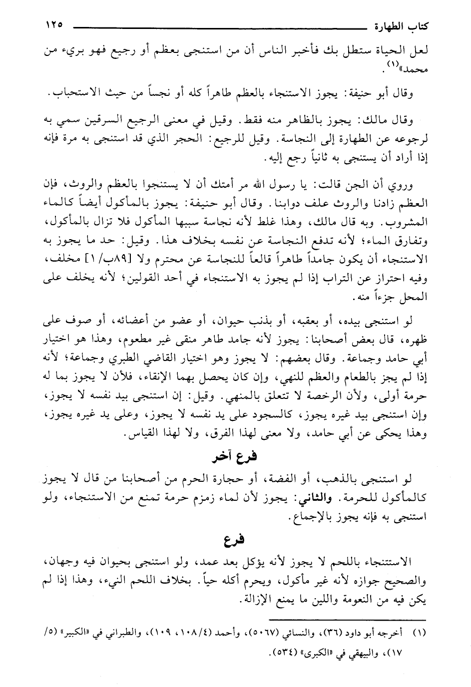 وقال أبو حنيفة: يجوز الاستنجاء بالعظم طاهرًا كله أو نجسًا من حيث الاستحباب.