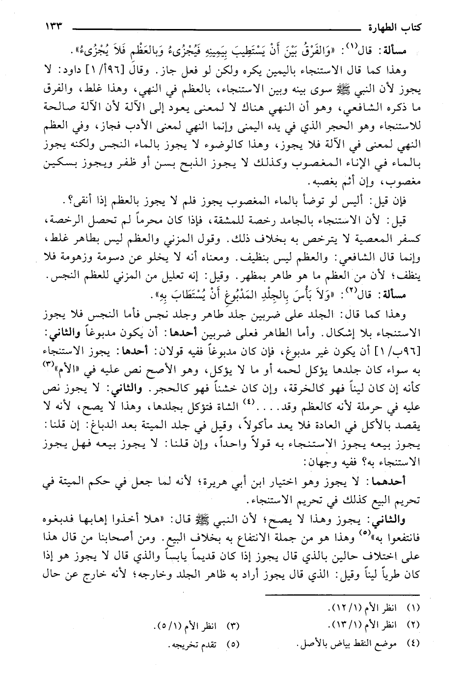 قيل: لأن الاستنجاء بالجامد رخصةً للمشقةً فإذا كان محرمًا لم تحصل الرخصة، كسفر المعصية لا يترخص به بخلاف ذلك. وقول المزني والعظم ليس بطاهر غلط، وإنما قال الشافعي: والعظم ليس بنظيف. ومعناه أنه لا يخلو عن دسومةً وزهومةً فلا ينظف؛ لأن من العظم ما هو طاهر بمظهر. وقيل: إنه تعلل من المزني للعظم النجس.