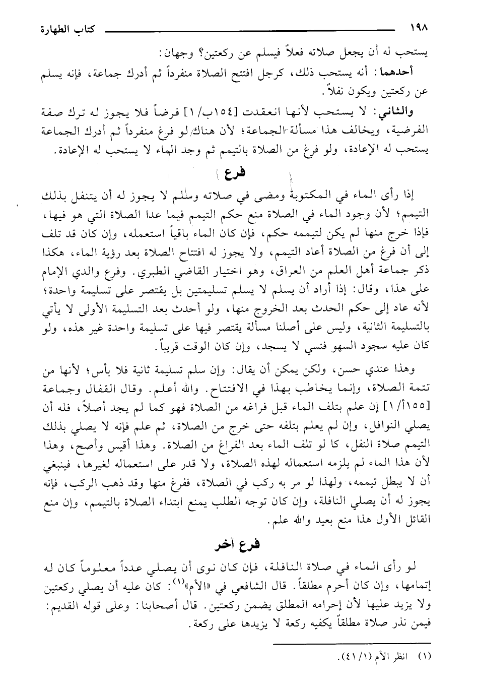 وهذا عندي حسن, ولكن يمكن أن يقال: وإن سلم تسليمة ثانية فلا يأس؛ لأنها من تتمة الصلاة, وإنما يخاطب بهذا في الافتتاح. والله أعلم. وقال القفال وجماعة [155 ب/1] إن علم بتلف الماء قبل فراغه من الصلاة فهو كما لم يجد أصلاً, فله أن يصلي النوافل, وإن لم يعلم بتبلغه حتى خرج من الصلاة, ثم علم فإنه لا يصلي بذلك التيمم صلاة النفل, كما لو تلف الماء بعد الفراغ من الصلاة. وهذا أقيس وأصح, وهذا لأن هذا الماء لم يلزمه