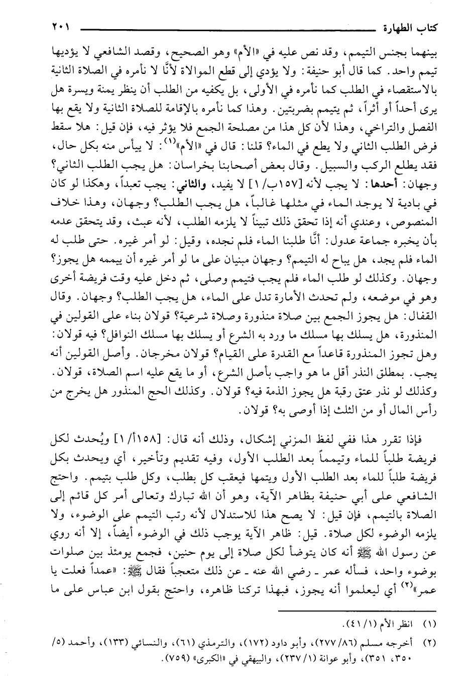 فإذا تقرر هذا ففي لفظ المزني إشكال, وذلك أنه قال: [158 ب/1] ويحدث لكل فريضة طلبًا للماء وتيمًا بعد الطلب الأول, وفيه تقديم وتأخير, أي ويحدث بكل فريضة طلبًا للماء بعد الطلب الأول ويتمها فيعقب كل بطلب, وكل طلب بتيمم. واحتج الشافعي على أبي حنيفة بظاهر الآية, وهو أن الله تبارك وتعالى أمر كل قائم إلى الصلاة بالتيمم, فإن قيل: لا يصح هذا الاستدلال لأنه رتب التيمم على الوضوء, ولا يلزمه الوضوء لكل صلاة. قيل: ظاهر الآية يوجب ذلك في الوضوء أيضًا, إلا أنه روى عن رسول الله صلى الله عليه وسلم أنه كان يتوضأ لكل صلاة إلى يوم حنين, فجمع يومئذ بين صلوات بوضوء واحد, فسأله عمر- رضي الله عنه- عن ذلك متعجبًا فقال صلى الله عليه وسلم: "عمدًا فعلت يا عمر" أي ليعلموا أنه يجوز, فبهذا تركنا ظاهره, واحتج بقول ابن عباس على ما