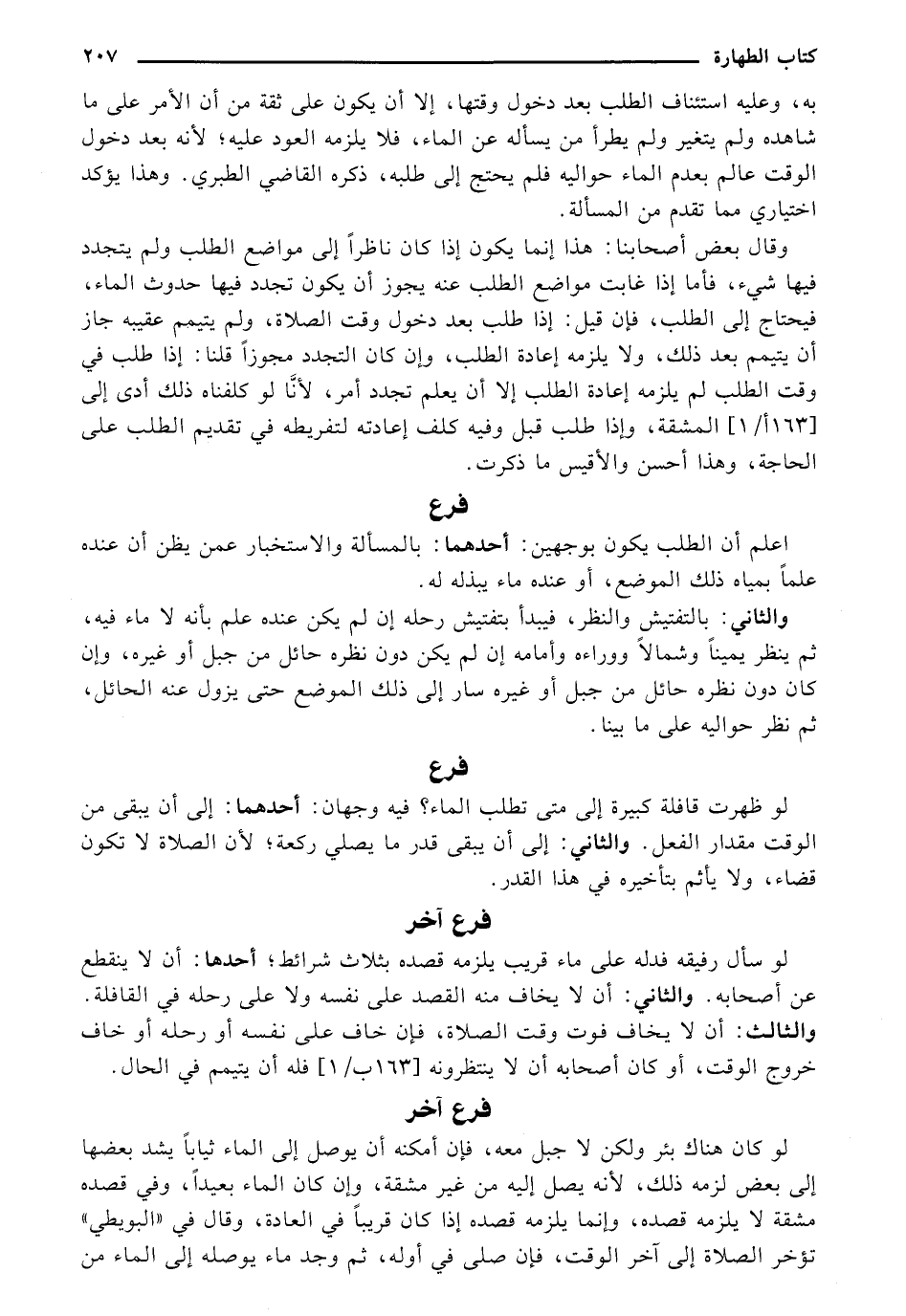 وقال بعض أصحابنا: هذا إنما يكون إذا كان ناظراً إلى مواضع الطلب ولم يتجدد فيها شيء، فأما إذا غابت مواضع الطلب عنه يجوز أن يكون تجدد فيها حدوث الماء، فيحتاج إلى الطلب، فإن قيل: إذا طلب بعد دخول وقت الصلاة، ولم يتيمم عقيبه جاز أن يتيمم بعد ذلك، ولا يلزمه إعادة الطلب، وإن كان التجدد مجوزاً قلنا: إذا طلب في وقت الطلب لم يلزمه إعادة الطلب إلا أن يعلم تجدد أمر، لأنا لو كلفناه ذلك أدى إلى [163 ب/ 1] المشقة، وإذا طلب قبل وفيه كلف إعادته لتفريطه في تقديم الطلب على الحاجة، وهذا أحسن والأقيس ما ذكرت.