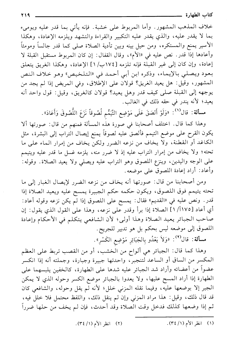وهذا كما قال: الجبائر هي ألواح من الخشب، أو من الصب تربط على العظم المكسر من الساق أو الساعد لتنجبر، واحدتها جبيرة وجبارة، وجملته أنه إذا انكسر عضواً من أعضائه وأراد شد الجبائر عليه شدها على الطهارة، كالخفين يلبسهما على الطهارة إذا أراد المسح عليها، ولا يعدوا بالجبائر موضع الكسر وحوله الذي لا يمكن الجبر إلا بوضعها عليه، وفيما نقله المزني خلل؛ لأنه لم يقل وحوله، والشافعي كان قد قال ذلك، وقيل: هذا مراد المزني وإن لم ينقل ذلك، واللفظ محتمل فلا خلل فيه، ثم إذا وضعها كذلك فدخل وقت الصلاة وقد أحدث، فإن لم يخف من حلها ضرراً