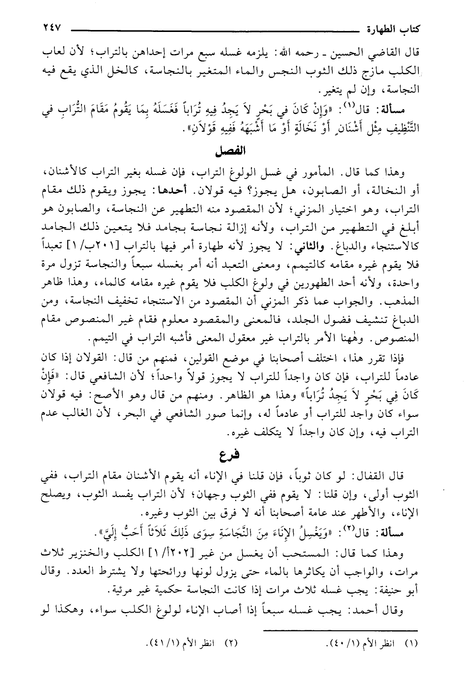 التنظيف مثل أشنان أو نحالة أو ما أشبهه ففيه قولان).