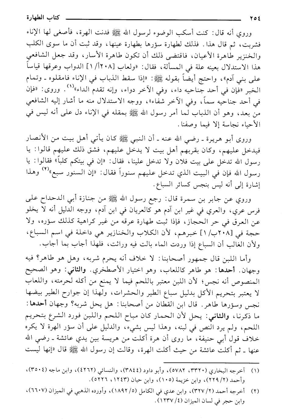 وروي أنه قال: كنت أسكب الوضوء لرسول الله (صلى الله عليه وسلم) فدنت الهرة, فأصغى لها الإناء فشربت, ثم قال هذا, فذلم لطهارة سؤرها بطهارة عينها, وقد ثبت ان ما سوى الكلب والخنزير طاهرة الأعيان, فاقتضى ذلك أن تكون طاهرة الأسار, وقد جعل الشافعي هذا الاستدلال بعينه علة في المسألة, فقال: ولعاب (208 ب/1) الدواب وعرقها قياسًا على بني آدم, واحتج أيضٌا بقوله (صلى الله عليه وسلم): إذا سقط الذباب في الإناء فاملقوه, وتمام الخبر فإن في أحد جناحيه داء, وفي الآخرة دواء, وإنه تقدم الداء , وروي: فإن في أحد جناحيه سمًا, وفي الآخر شفاء, ووجه الاستدلال منه ما أشار إليه الشافعي من بعد, وهو أن الذباب لما أمر رسول الله (صلى الله عليه وسلم) بمقله في الإناء دل على أنه ليس في الأحياء نجاسة إلا فيما وصفنا.