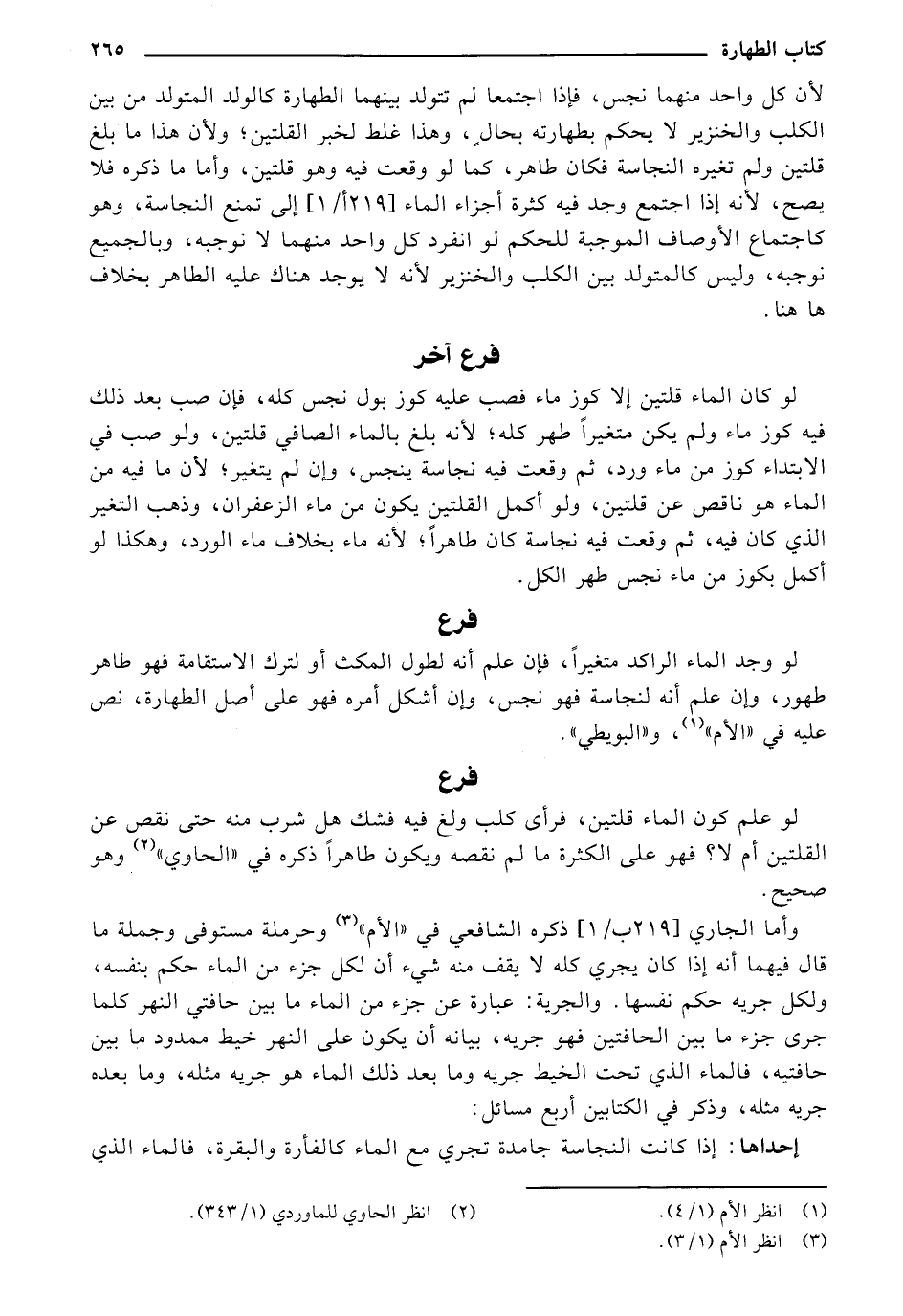 وأما الجاري [220 أ/1] ذكره الشافعي في "الأم "وحرملة مستوفى وجملة ما قال فيهما أنه إذا كان يجري كله لا يقف منه شيء أن لكل جزء من الماء حكم بنفسه، ولكل جريه حكم نفسها. والجرية: عبارة عن جزء من الماء ما بين حافتي النهر كلما جرى جزء ما بين الحافتين فو جريه، بيانه أن يكون على النهر خيط ممدود ما بين حافتيه، فالماء الذي تحت الخيط جريه وما بعد ذلك الماء هو جريه مثله، وما بعده جري مثله، وذكر في الكتابين أربع مسائل: