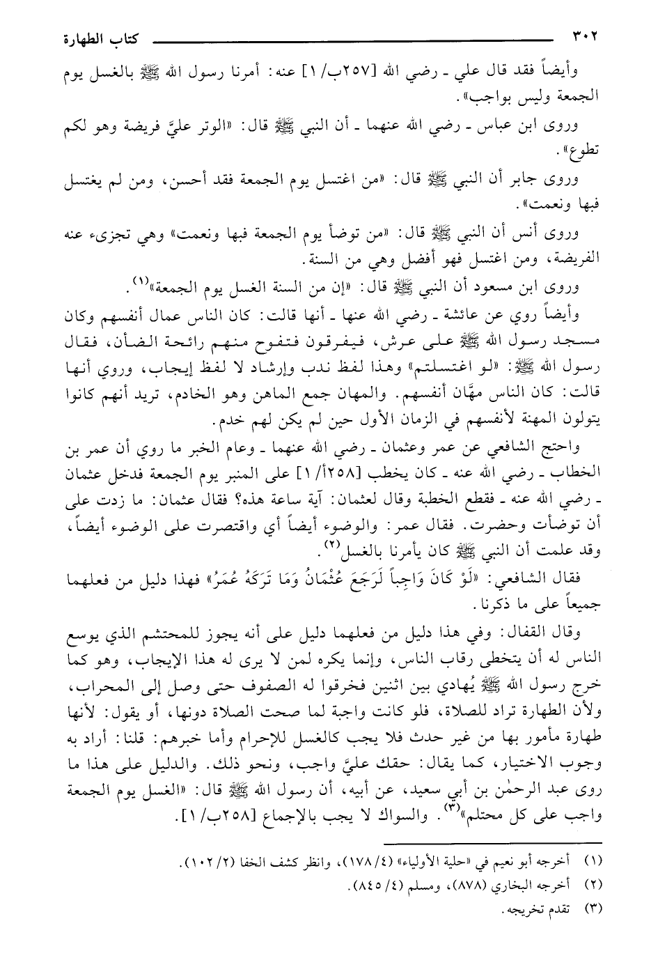 وأيضًا فقد قال علي- رضي الله (258 أ/ 1) عنه: أمرنا رسول الله صلى الله عليه وسلم بالغسل يوم الجمعة وليس بواجب".