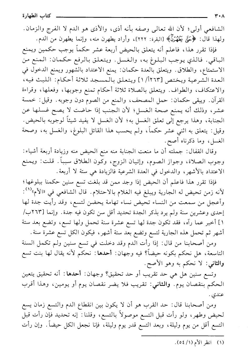 فإذا تقرر هذا، فاعلم أنه يتعلق بالحيض أربعة عشر حكمًا يوجب حكمين ويمنع الباقي. فالذي يوجب البلوغ به، والغسل. ويتعلق بالرفع حكمان: المنع من الاستمتاع والطلاق. ويتعلق بالعدة حكمان: يمنع الاعتداد بالشهور ويمنع الدخول في العدة الشرعية ويختص (263 ب/ 1) ويتعلق بالمسجد ثلاثة أحكام: اللبث فيه، والاعتكاف، والطواف. ويتعلق بالصلاة ثلاثة أحكام تمنع وجوبها، وفعلها، وقراءة القرآن. ويبقى حكمان: حمل المصحف، والمنع من الصوم دون وجوبه. وقيل: خمسة عشر، وذلك أنه يمنع صحة الغسل؛ لأن الجنب إذا حاضت لا يصح غسلها عن الجنابة، وهذا يرجع إلى تعليق الغسل به؛ لأن الغسل لا يفيد شيئًا لوجوبه بالحيض. وقيل: يتعلق به اثني عشر حكمًا، ولم يحسب هذا القائل البلوغ، والغسل به، وصحة الغسل، وما ذكرناه أصح.