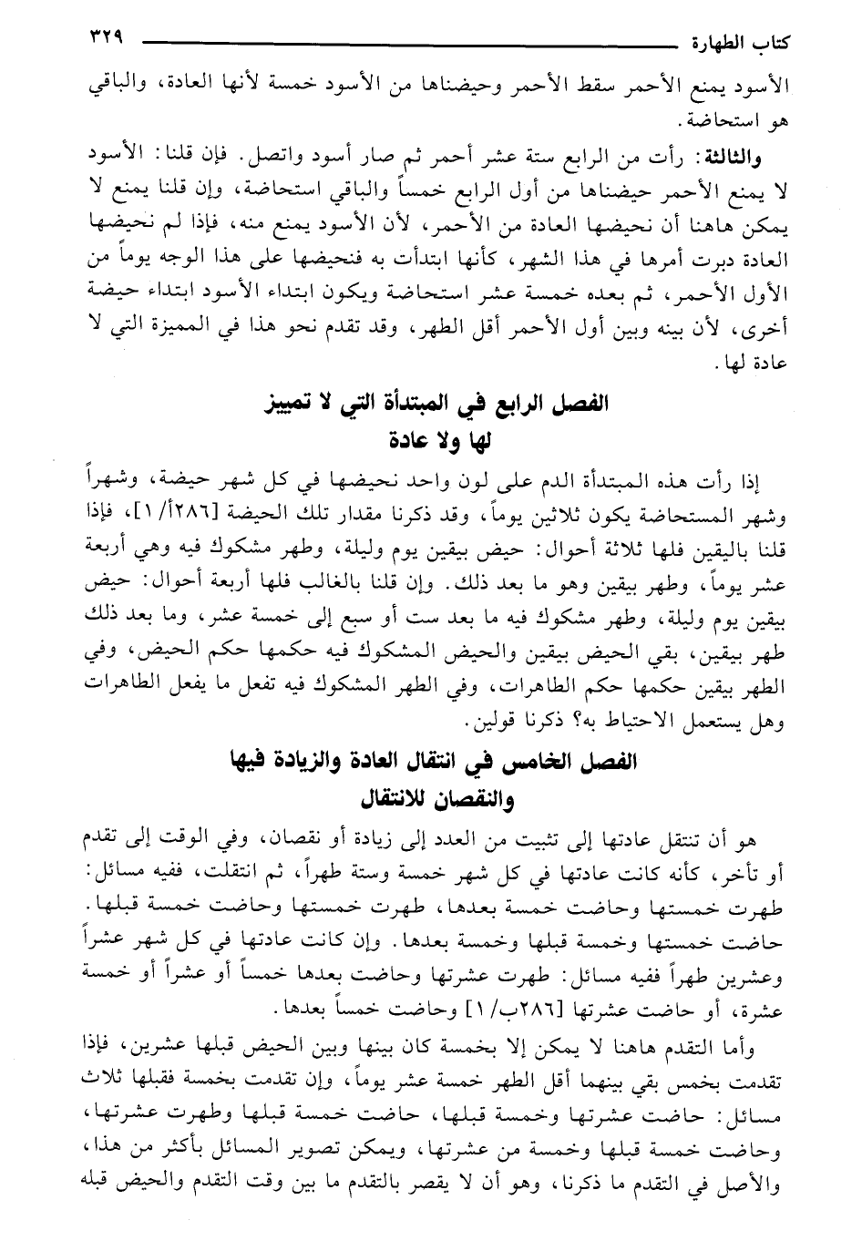 الفضل الخامس في انتقال العادة والزيادة فيها والنقصان للانتقال