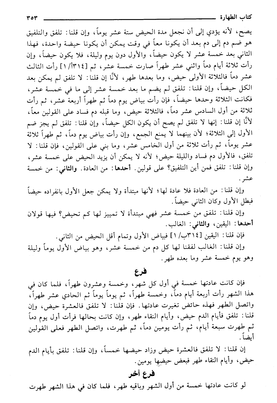 يصح، لأنه يؤدي إلى أن نجعل مدة الحيض ستة عشر يوماً، وإن قلنا: تلفق التلفيق هو ضم دم إلى دم بعد أن يكونا معاً في وقت يمكن أن يكونا حيضة واحدة، فهذا الثاني بعد خمسة عشر لا يكون حيضاً والأول دون يوم وليلة، فلا يكون حيضاً، وإن رأت ثلاثة أيام دماً وأثنى عشر طهراً صارت خمسة عشر، ثم (314 ب/ 1) رأت الثالث عشر دماً فالثلاثة الأولى حيض، وما بعدها طهر، لأنا أن قلنا: لا تلفق لم يمكن بعد الكل حيضاً، وإن قلنا: تلفق لم يضم ما بعد خمسة عشر إلى ما في خمسة عشر، فكانت الثلاثة وحدها حيضاً، فإن رأت بياض يوم دماً ثم طهراً أربعة عشر، ثم رأت ثلاثة من أول السادس عشر دماً، فالثلاثة حيض، وما قبله دم فساد على القولين معاً، لأنا إن قلنا: إنها لا تلفق لم يصح أن يكون الكل حيضاً، وإن قلنا: تلفق لم يجز ضم الأول إلى الثلاثة، لأن بينهما لا يمنع الجمع، وإن رأت بياض يوم دماً، ثم