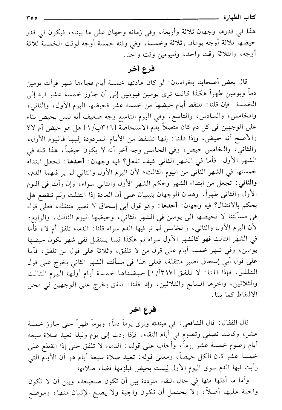 هذا في قدرها وجهان ثلاثة وأربعة، وفي زمانه وجهان على ما بيناه، فيكون في قدر حيضها ثلاثة أوجه يومان وثلاثة وخمسة، وفي وقته خمسة أوجه لوقت الخمسة ثلاثة أوجه، والثلاثة وقت واحد،.