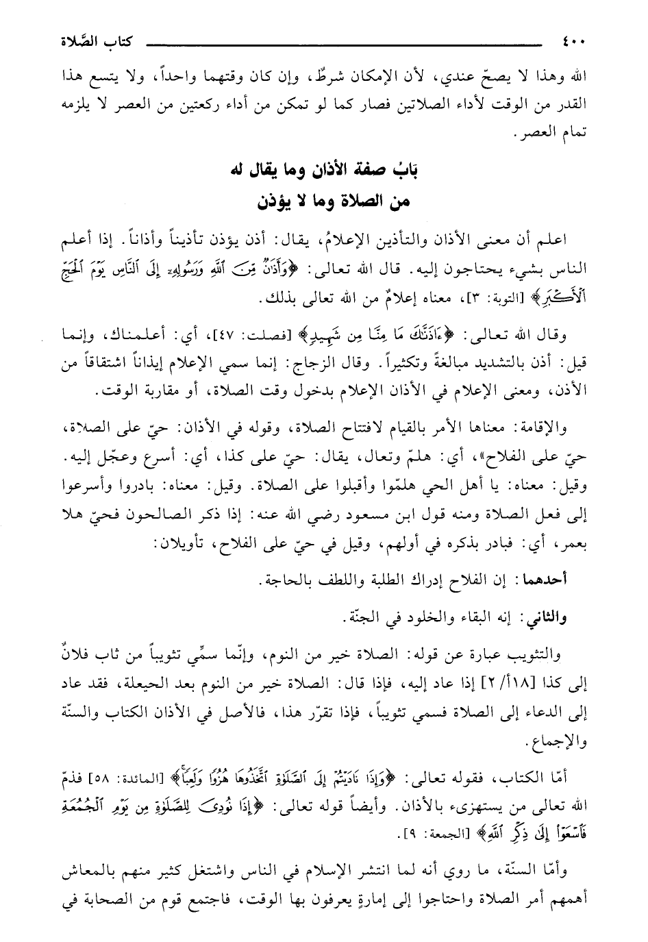 أما الكتاب، فقوله تعالى: "وإذا ناديتم إلى الصلاة اتخذوها هزواً ولعباً" [المائدة: 58] فذمَّ الله تعالى من يستهزئ بالأذان. وأيضاً قوله تعالى: "إذا نودي للصلاة من يوم الجمعة فاسعوا إلى ذكر الله" [الجمعة: 9].
