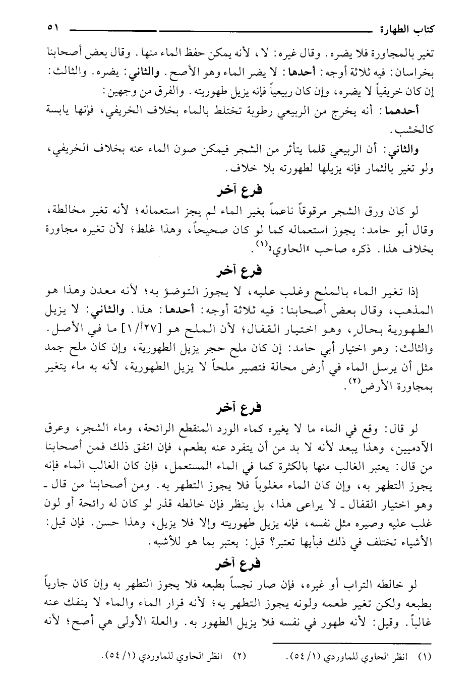 لو قال: وقع في الماء ما لا يغيره كماء الورد المنقطع الرائحة، وماء الشجر، وعرق الآدمين، وهذا يبعد لأنه لابد من أن يتفرد عنه بطعم، فإن اتفق ذلك فمن أصحابنا من قال: يعتبر الغالب منها بالكثرة كما في الماء المستعمل، فإن كان الغالب الماء فإنه يجوز التطهر به، وإن كان الماء مغلوبًا فلا يجوز التطهر به. ومن أصحابنا من قال- وهو اختيار القفال- لا يراعى هذا، بل ينظر فإن خالطه قذر لو كان له رائحة أو لون غلب عليه وصيره مثل نفسه، فإنه يزيل طهوريته وإلا فلا يزيل، وهذا حسن. فإن قيل: الأشياء تختلف في ذلك فبأيها تعتبر؟ قيل: يعتبر بما هو للأشبه.
