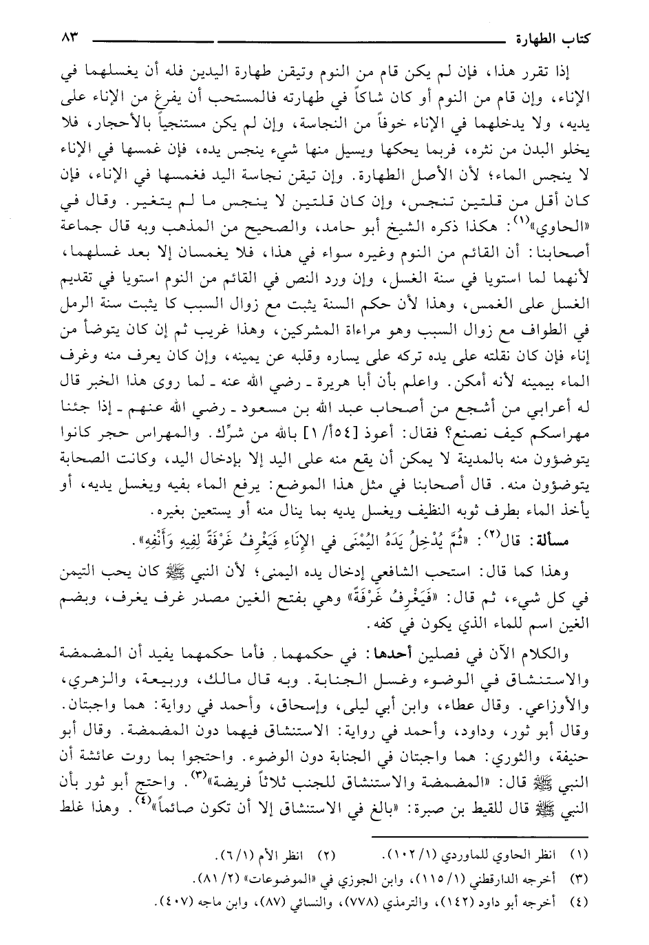 مسألة: قال: "ثُمَّ يُدْخِلُ يَدَهُ اليُمْنَى في الإِنَاءِ فَيَغْرِفُ غَرْفَةً لِفِيهِ وَأَنْفِهِ".