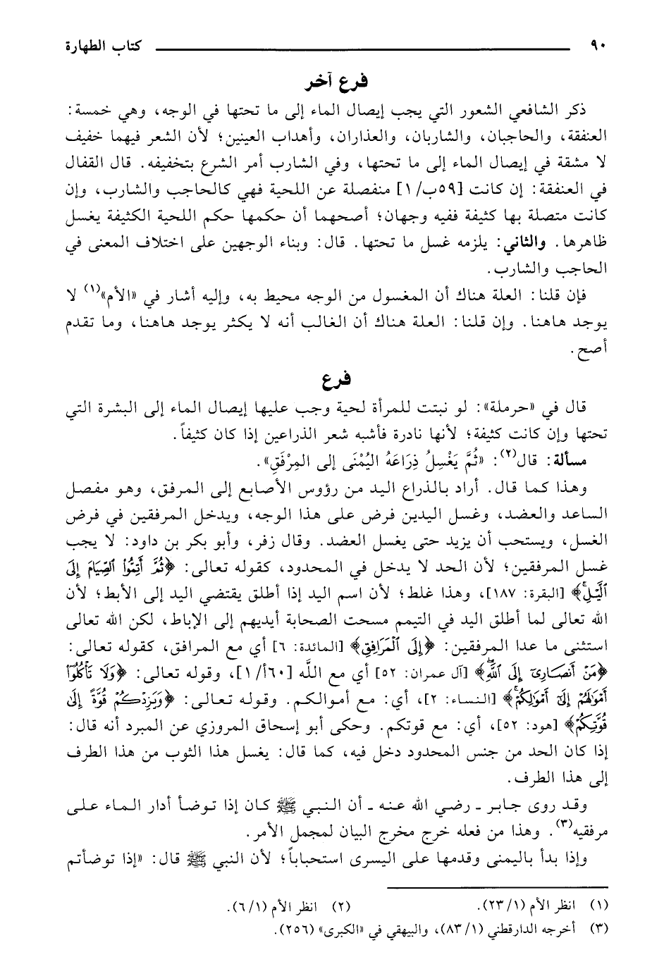 ذكر الشافعي الشعور التي يجب إيصال الماء إلى ما تحتها في الوجه، وهي خمسة: العنفقة، والحاجبان، والشاربان، والعذاران، وأهداب العينين؛ لأن الشعر فيهما خفيف لا مشقة في إيصال الماء إلى ما تحتها، وفي الشارب أمر الشرع بتخفيفه. قال القفال في