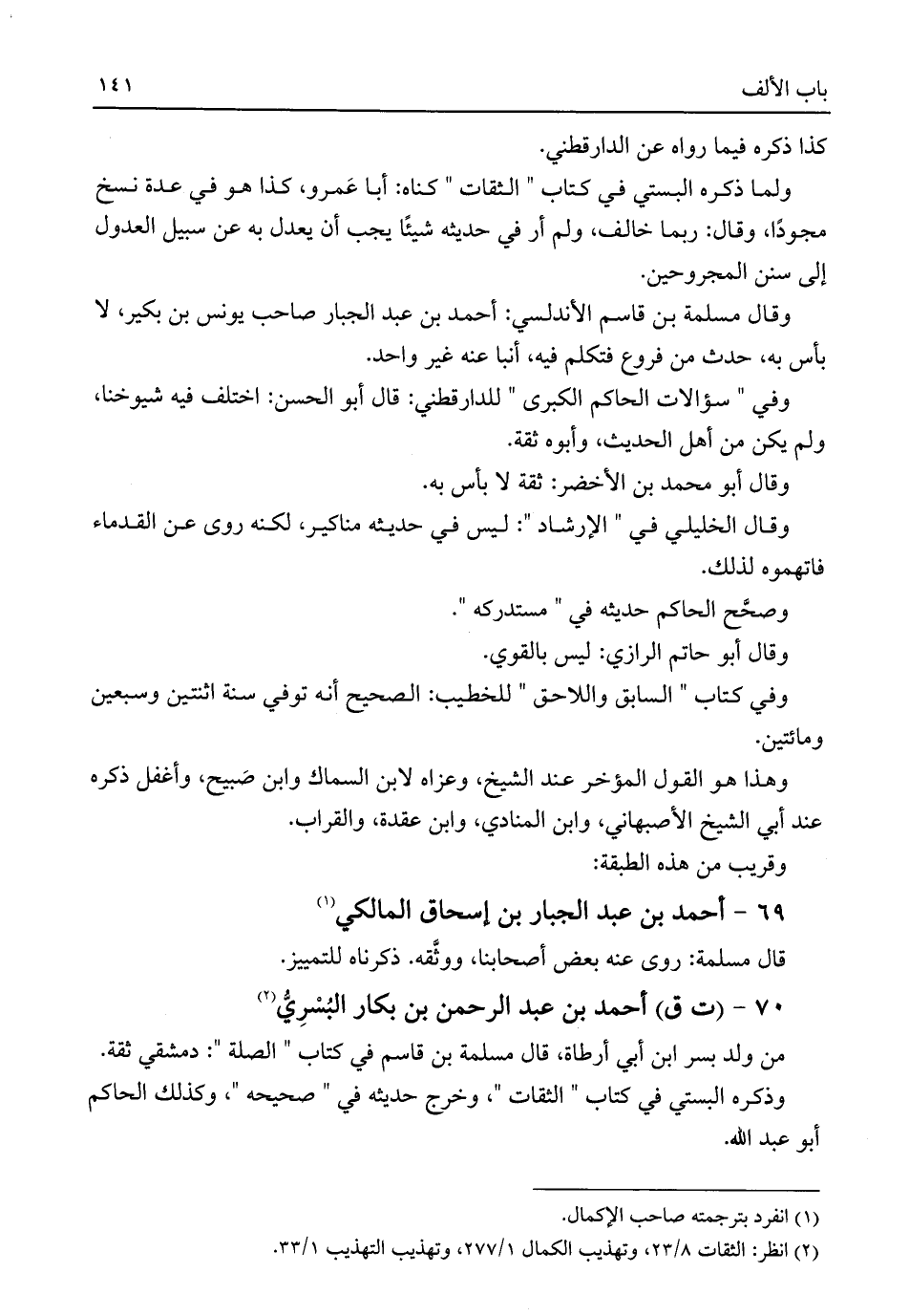 ٦٩ - أحمد بن عبد الجبار بن إسحاق المالكي (¬١)